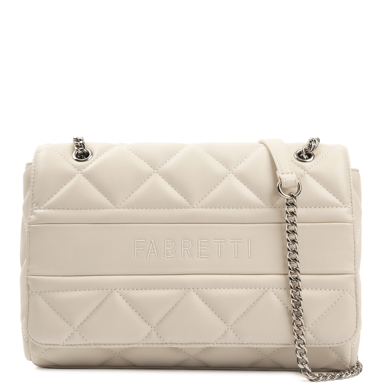 Стильная кросс-боди FABRETTI в бежевом цвете выполнена из натуральной гладкой кожи и декорирована ромбовидной стежкой. Сумка закрывается клапаном с механическим замком. Внутри 2 боковых кармана для мелочей: открытый и на молнии. В качестве декора выступает лаконичная вышивка с логотипом бренда. Изящный плечевой ремень-цепочку можно носить двумя способами: через плечо или на плече, трансформировав в 2 ручки. Цвет фурнитуры - серебро.