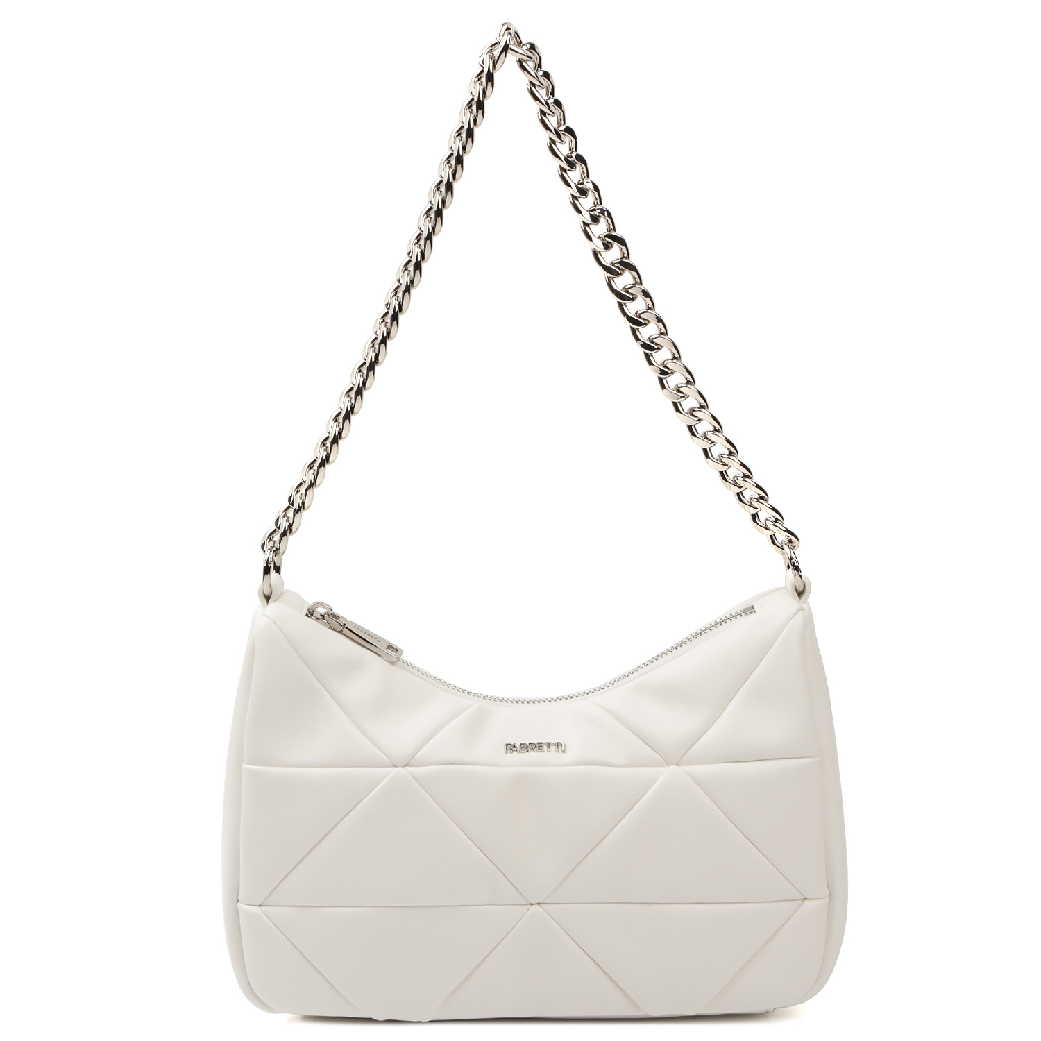 Оригинальная сумка через плечо FABRETTI в белом цвете выполнена из натуральной гладкой кожи и декорирована геометрической стежкой. Сумка закрывается на молнию с металлическим поводком. Внутри 2 боковых кармана для мелочей: открытый и на молнии. В качестве декора выступает съемная цепочка со средними звеньями, которая также может быть использована в качестве короткого ремня. Текстильный плечевой ремень регулируется по длине, ширина - 4 см. Цвет фурнитуры - серебро.