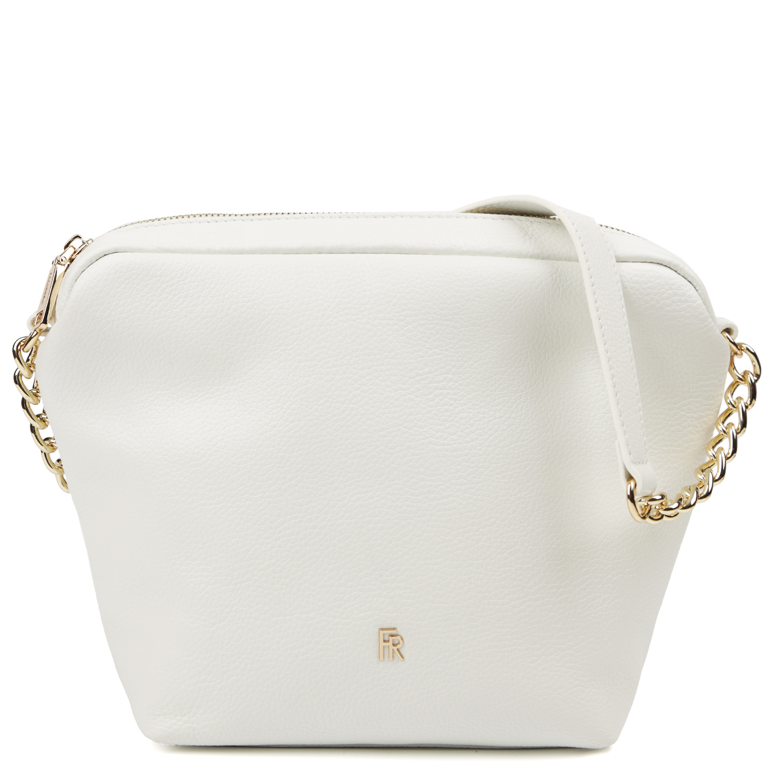 Изящная сумка на плечо FABRETTI в белом цвете выполнена из натуральной зернистой кожи. Основное отделение закрывается на молнию с металлическим поводком. Внутри есть 2 боковых кармана для мелочей: открытый и на молнии. На тыльной стороне предусмотрен карман быстрого доступа на молнии. Плечевой ремень сочетает цепочку и кожаную вставку, ширина - 2,5 см. Цвет фурнитуры - золото.
