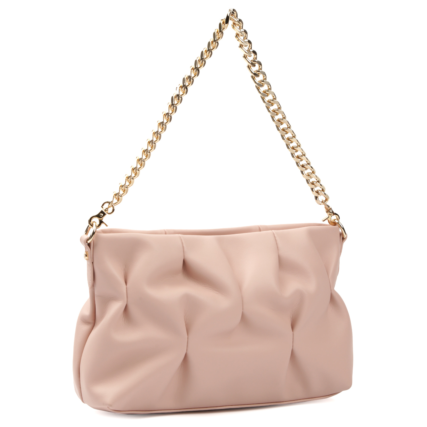 Стильная сумка на плечо FABRETTI в розовом оттенке выполнена из натуральной гладкой кожи и декорирована защипами, формирующими элегантные складки. Сумка закрывается на молнию. Внутри 2 боковых кармана для мелочей: открытый и на молнии. В качестве декора выступает съемная цепочка со средними звеньями, которая также может быть использована в качестве короткого ремня. Изящный плечевой ремень регулируется по длине, ширина - 1,5 см. Цвет фурнитуры - золото.
