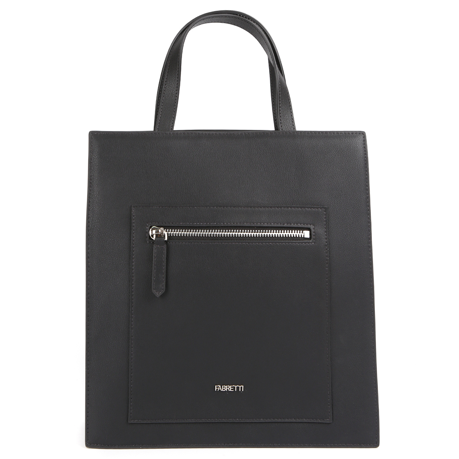 Стильная сумка-тоут FABRETTI в черном цвете выполнена из натуральной зернистой кожи с тиснением под кожу оленя. Основное отделение закрывается на молнию с кожаным поводком. Внутри есть 3 кармана для мелочей: 2 открытых и на молнии. На лицевой стороне расположен карман быстрого доступа на молнии. На тыльной стороне есть глубокий карман на магнитной кнопке. Две ручки позволяют комфортно носить аксессуар в руке. В комплекте идет съемный плечевой ремень, регулируемый по длине. Ширина - 1,5 см. Цвет фурнитуры - серебро.