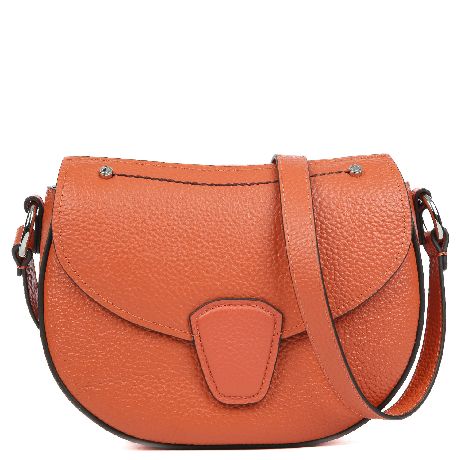Компактная кросс-боди PALIO в оранжевом оттенке выполнена из натуральной зернистой кожи. Сумка закрывается клапаном с магнитной кнопкой. Внутри есть открытый карман для мелочей. Плечевой ремень регулируется по длине, ширина - 2 см. Цвет фурнитуры - серебро.