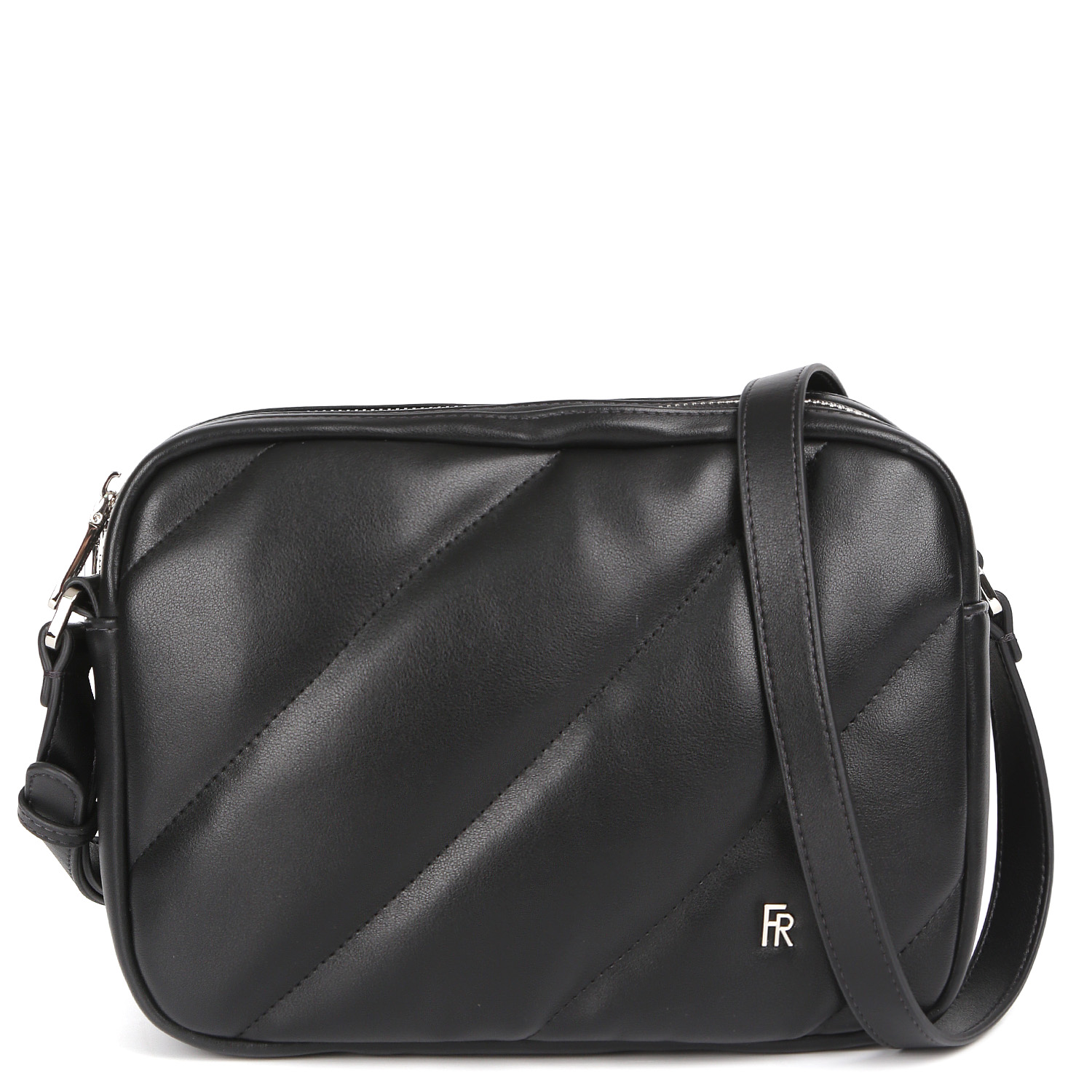 Вместительная кросс-боди FABRETTI в черном цвете выполнена из натуральной гладкой кожи и декорирована диагональной стёжкой. Сумка имеет 2 отделения, каждое из которых закрывается на полукруглую молнию. Внутри 3 боковых кармана для мелочей: 2 открытых и на молнии. Плечевой ремень регулируется по длине, ширина - 2 см. Цвет фурнитуры - серебро.