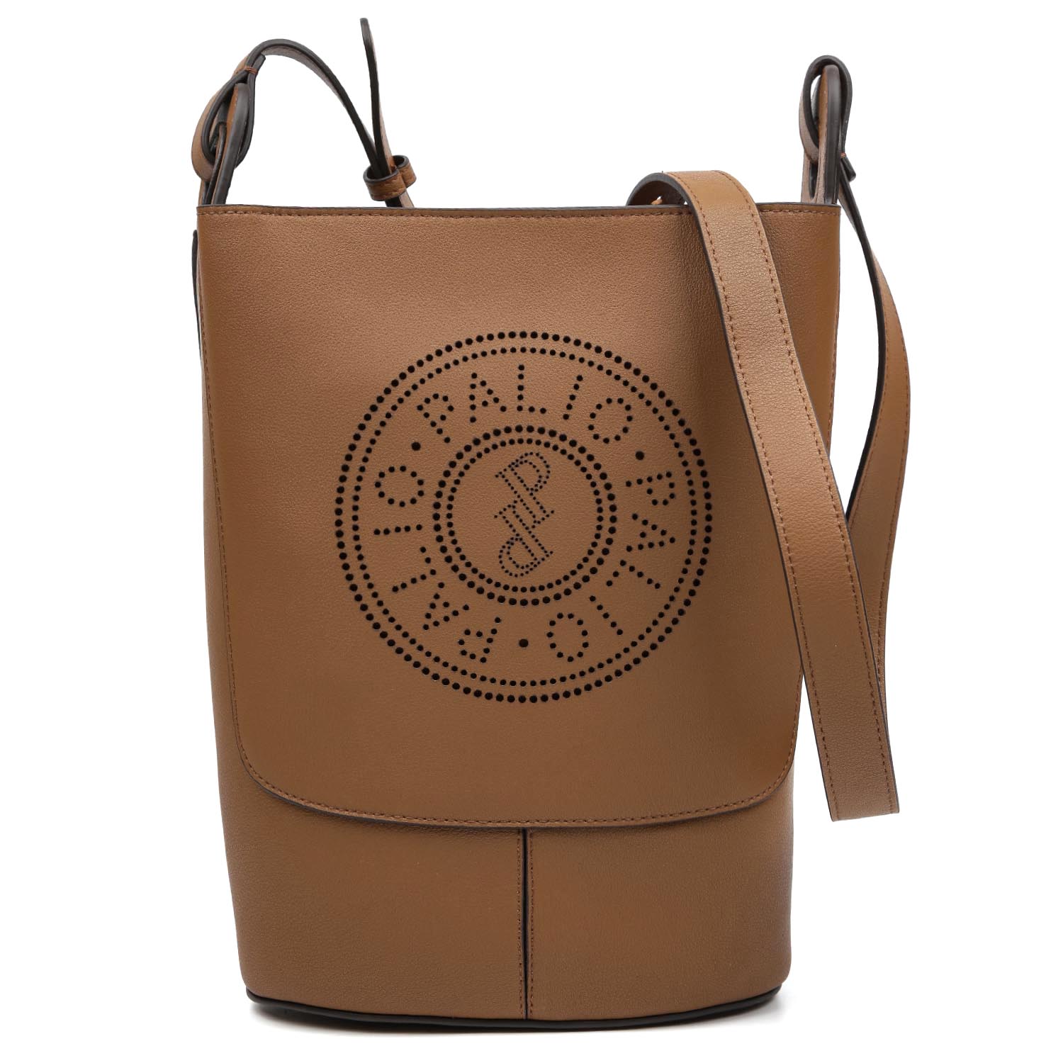 Эффектная сумка кросс-боди PALIO в коричневом оттенке выполнена из натуральной кожи с тиснением под кожу оленя. Основное отделение закрывается на молнию с металлическим поводком. Внутри предусмотрен открытый карман для мелочей. Лицевая сторона декорирована перфорацией с изображением логотипа бренда. Плечевой ремень регулируется по длине. Цвет фурнитуры - серебро.