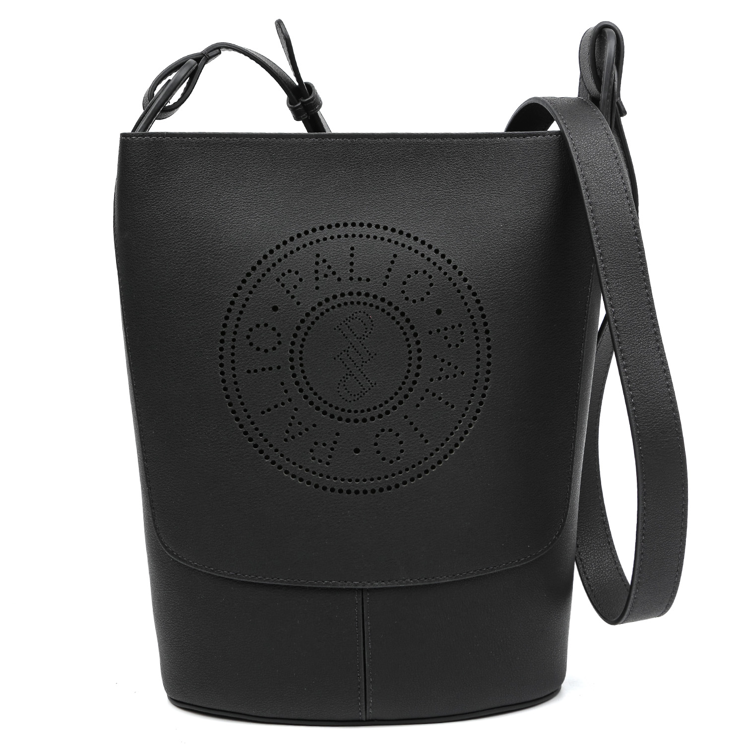Эффектная сумка кросс-боди PALIO в черном цвете выполнена из натуральной кожи с тиснением под кожу оленя. Основное отделение закрывается на молнию с металлическим поводком. Внутри предусмотрен открытый карман для мелочей. Лицевая сторона декорирована перфорацией с изображением логотипа бренда. Плечевой ремень регулируется по длине. Цвет фурнитуры - серебро.