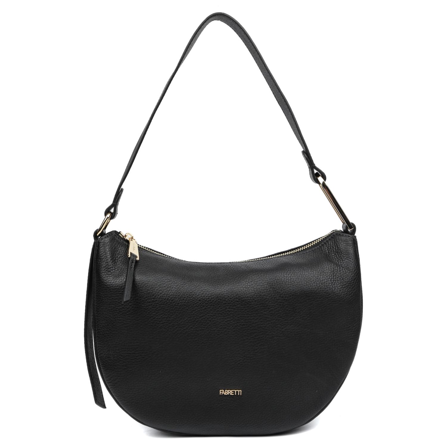 Стильная сумка на плечо FABRETTI в черном цвете выполнена из натуральной зернистой кожи и отличается лаконичным дизайном. Сумка закрывается на молнию с кожаным поводком. Внутри 2 боковых кармана для мелочей: открытый и на молнии. На тыльной стороне предусмотрен карман быстрого доступа на молнии. Плечевой ремень позволяет комфортно носить сумку на плече, ширина - 2,5 см. Цвет фурнитуры - золото.