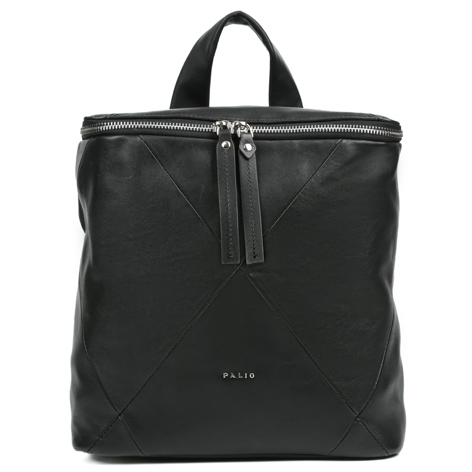 Стильный рюкзак PALIO в черном цвете выполнен из натуральной гладкой кожи и декорирован ромбовидной стёжкой. Основное отделение закрывается клапаном на молнии с 2 бегунками. Внутри есть 3 кармана для мелочей: 2 открытых и на молнии. На тыльной стороне предусмотрен вертикальный карман быстрого доступа на молнии. Сверху есть ручка, позволяющая комфортно носить изделие в руке. 2 лямки шириной 2,5 см регулируются по длине. Цвет фурнитуры - серебро.