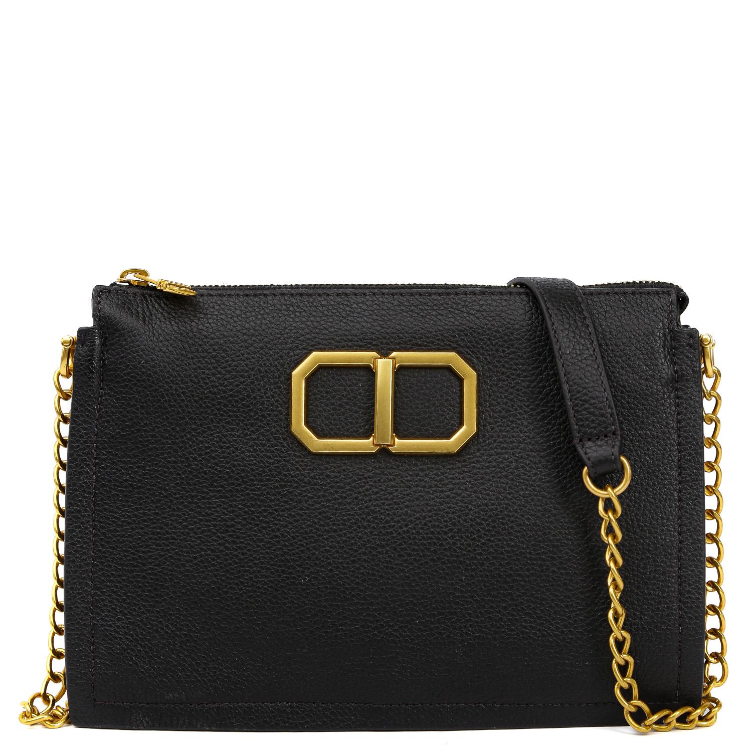 Компактная кросс-боди FABRETTI в черном цвете выполнена из натуральной зернистой кожи и декорирована крупной фурнитурой. Сумка закрывается на молнию. Внутри 3 отделения, 2 кармана для мелочей: открытый и на молнии. Плечевой ремень-цепочка гармонично дополняет дизайн изделия: длина - 130 см, ширина - 2 см. Цвет фурнитуры - золото.