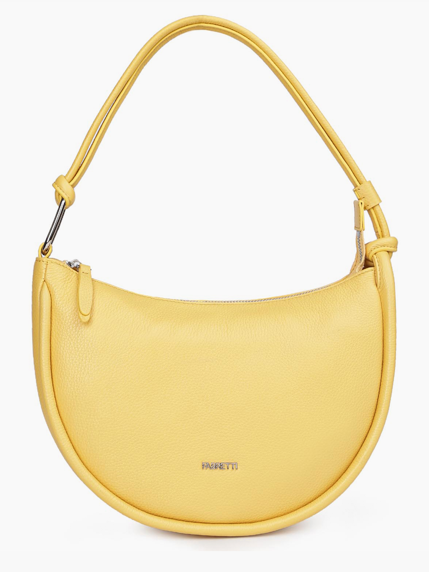 Стильная сумка на плечо FABRETTI в желтом оттенке выполнена из натуральной высококачественной зернистой кожи, приятной на ощупь. Основное отделение закрывается на молнию с кожаным поводком. Внутри 2 кармана для мелочей: открытый и на молнии. Оригинальный плечевой ремень дополнен металлической пряжкой. Цвет фурнитуры - серебро.