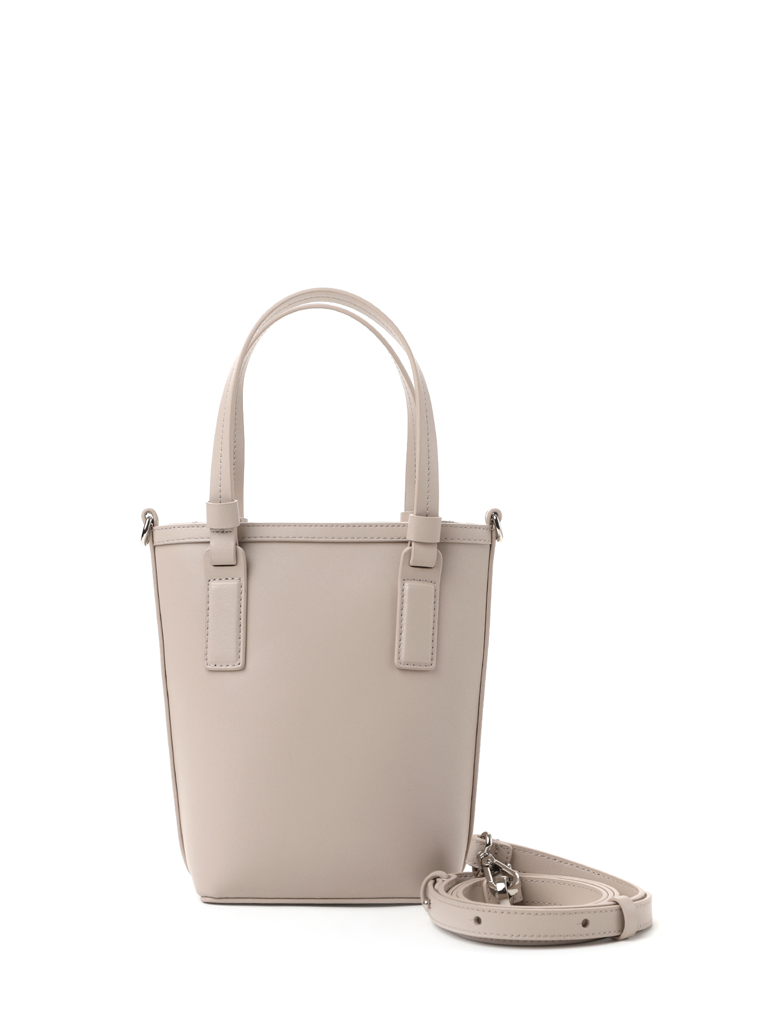 У модели одно отделение на молнии, внутри открытый карман и на молнии. Короткие плоские ручки удобны для ношения в руках, длинный ремешок на карабинах регулируется по длине. Лаконичный геометрический декор делает акцент на ручках и визуально удлиняет модель.