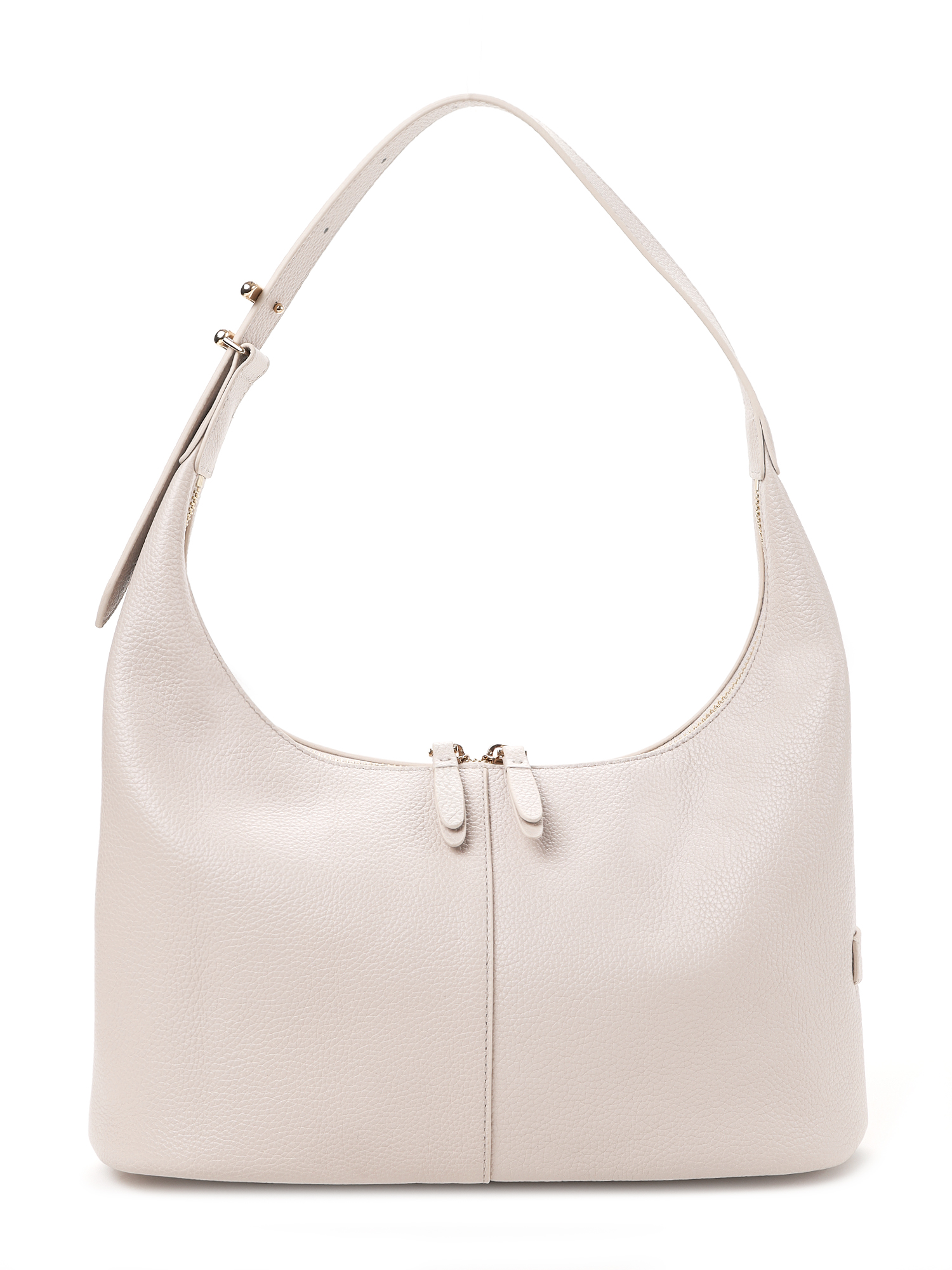 У этой модели мягкая свободная форма благодаря нежной натуральной коже с зернистой фактурой. Уютный светло-бежевый цвет хорошо сочетается с натуральными оттенками – базой для повседневной одежды.