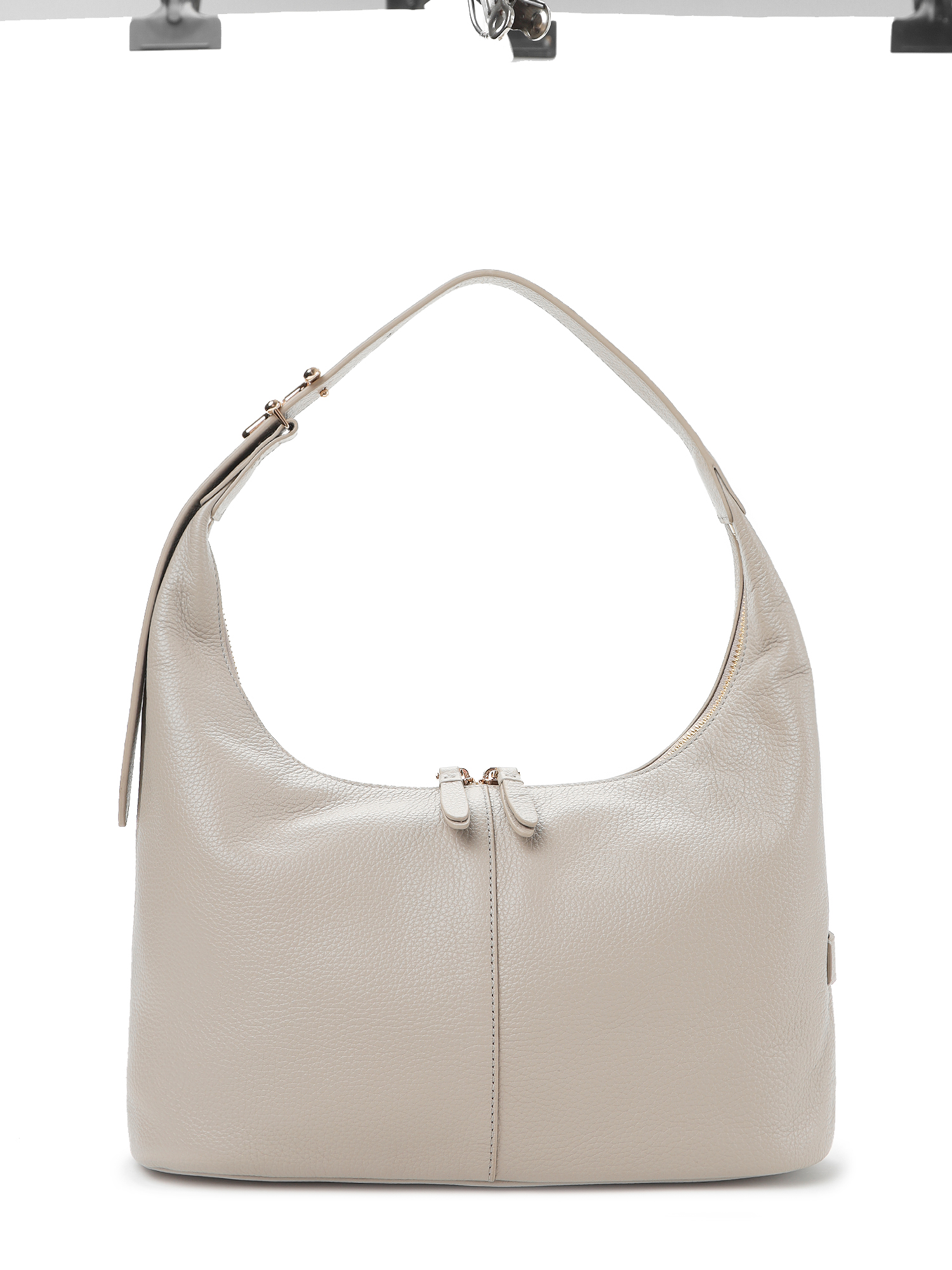 У этой модели мягкая свободная форма благодаря нежной натуральной коже с зернистой фактурой. Уютный серо-бежевый цвет хорошо сочетается с натуральными оттенками – базой для повседневной одежды.