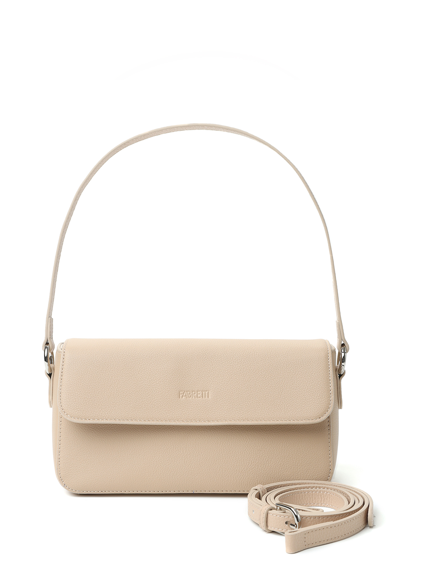 Лаконичная женская сумка сэтчел итальянского бренда FABRETTI это универсальный аксессуар, который подходит под деловой, повседневный, ретро-стиль. Сумка «нюдового» бежевого цвета выполнена из натуральной кожи с мелкозернистой фактурой.