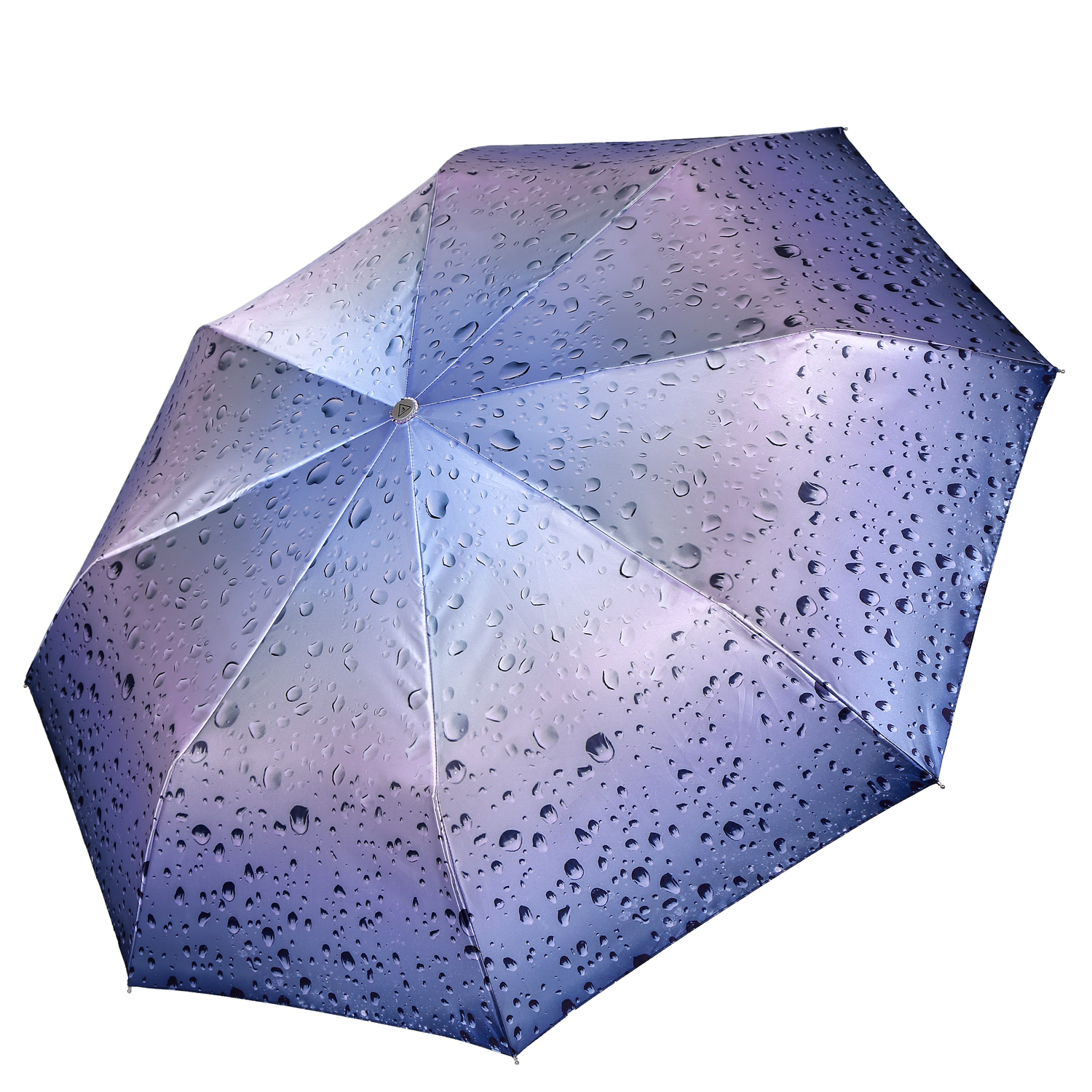 Эффектный зонт-автомат FABRETTI сочетает эффект деграде с изображением капель дождя. Ведущий синий тон дополняют оттенки лилового и нежно-сиреневого. Рисунок нанесен с помощью панорамной техники цифровой печати, которая обеспечивает долговечность изображению и точность цветопередачи. Купол выполнен из прочного водоотталкивающего полиэстера (сатин) и обладает гладкой шелковистой текстурой. Вода, попадая на такой купол, превращается в капли и легко скатываться вниз.