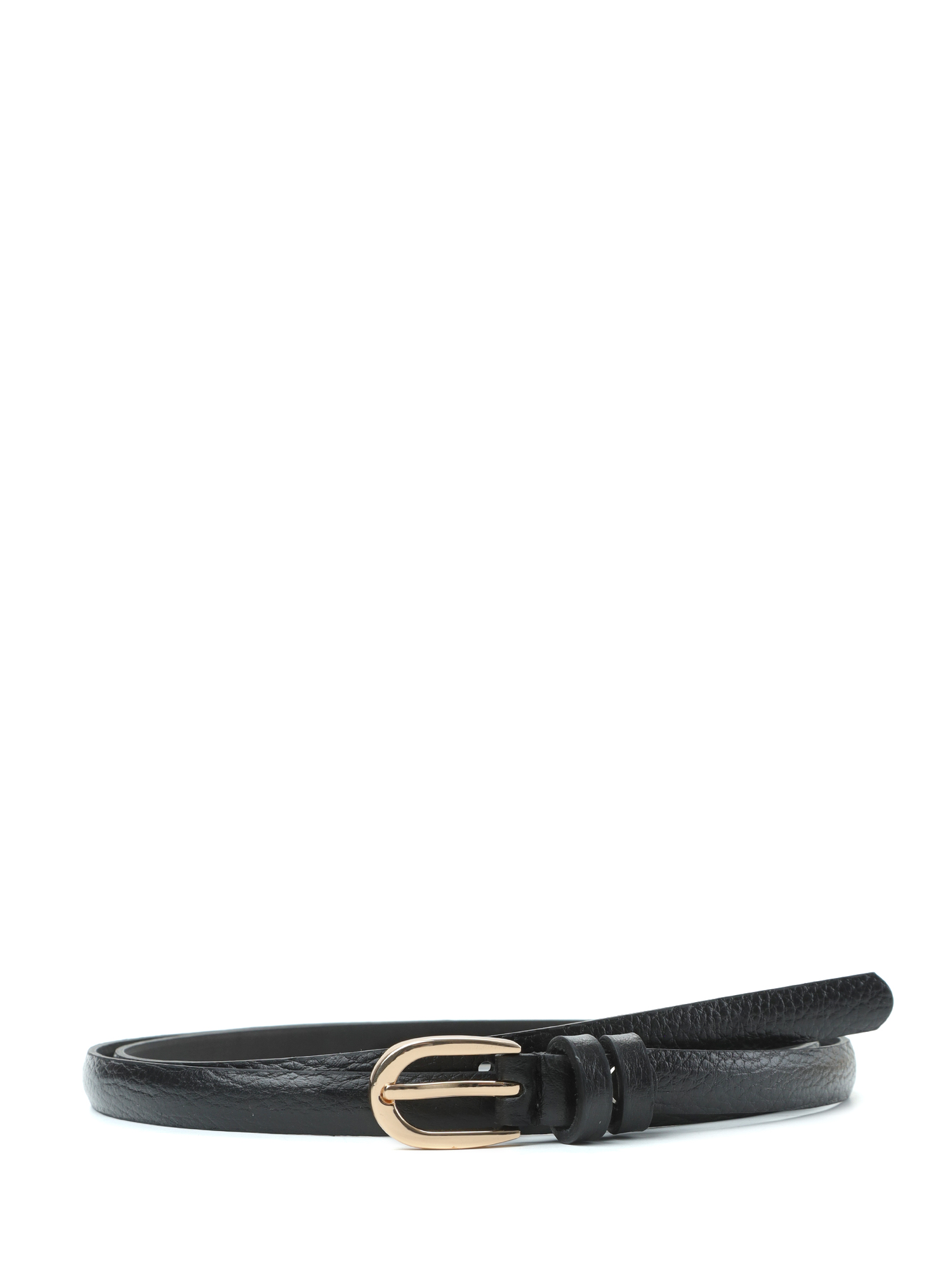 Узкий женский ремень итальянского бренда FABRETTI в черном цвете выполнен из натуральной кожи с крупнозернистой фактурой. Тыльная сторона - из гладкого плотного спила.