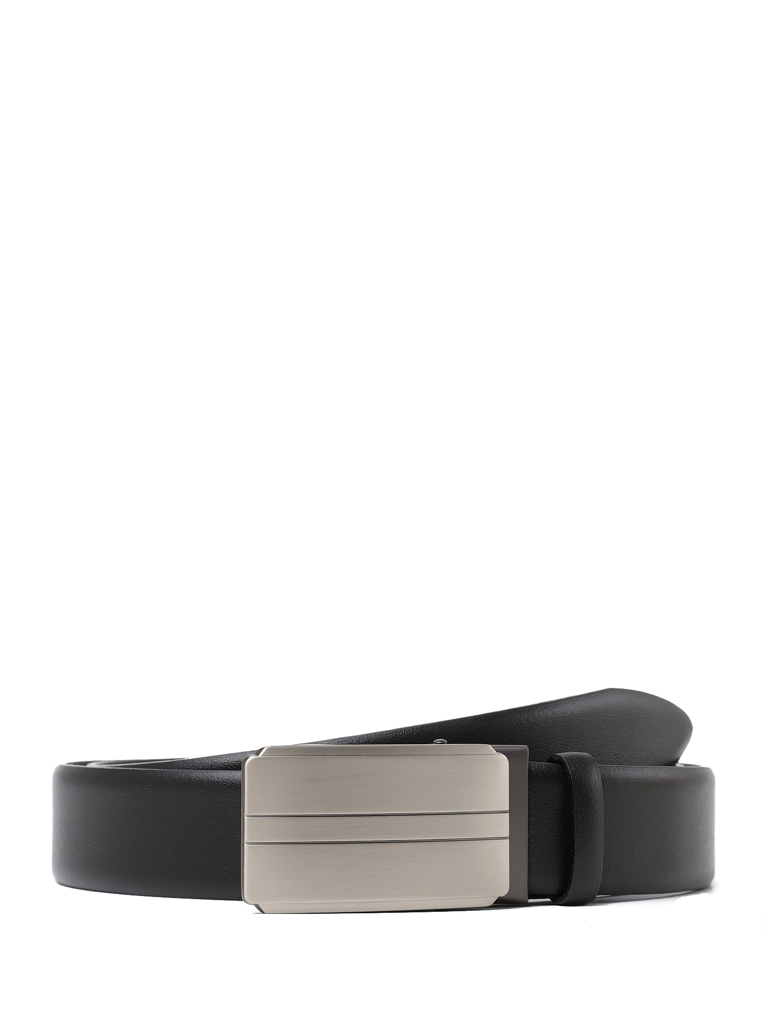 Ремень оснащен автоматической пряжкой оттенка светлого никеля и дополнен одной подвижной кожаной шлевкой. Пряжка съемная для самостоятельной корректировки длины ремня.