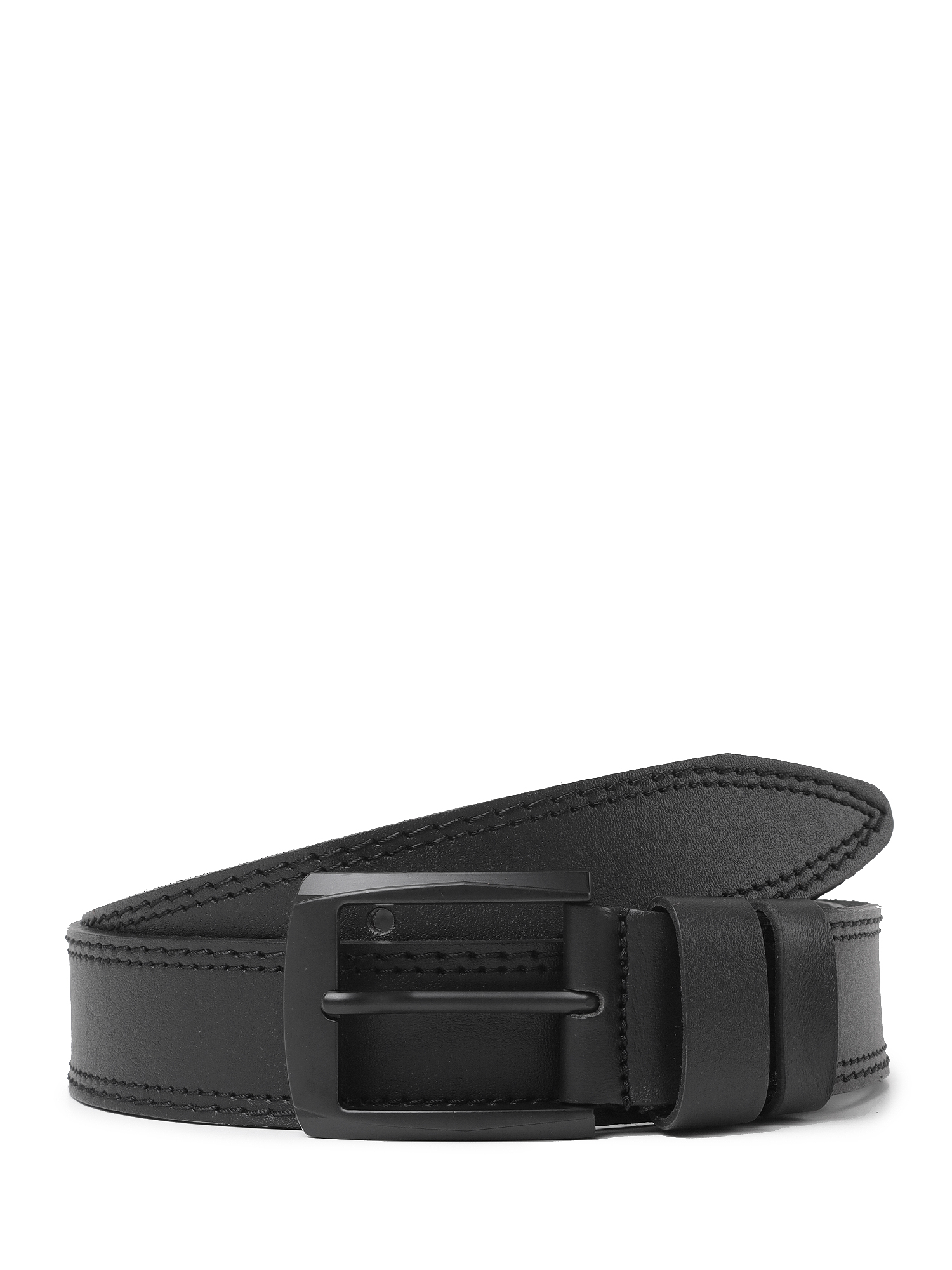 Широкий мужской кожаный ремень для джинсов от итальянского бренда FABRETTI в черном цвете. Лицевая сторона с гладкой мелкозернистой фактурой, тыльная – замшевый спил. Ремень украшен двумя рядами двойной отстрочки по краям и дополнен крупной прямоугольной пряжкой матово-черного цвета. Две шлевки из гладкой кожи в тон изделию: одна закреплена, вторая - подвижная. Пряжка съемная, на винте, для самостоятельной корректировки длины ремня.