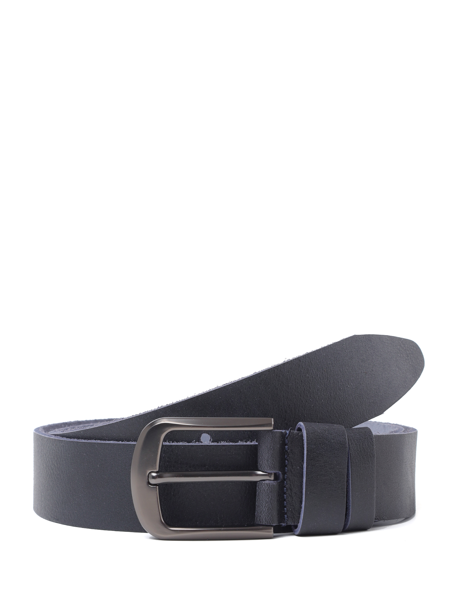 Классический мужской ремень под джинсы итальянского бренда FABRETTI, выполненный из мягкой натуральной кожи очень темного серого цвета. Лицевая сторона с гладкой мелкозернистой фактурой, тыльная – замшевый спил серо-синего оттенка.
