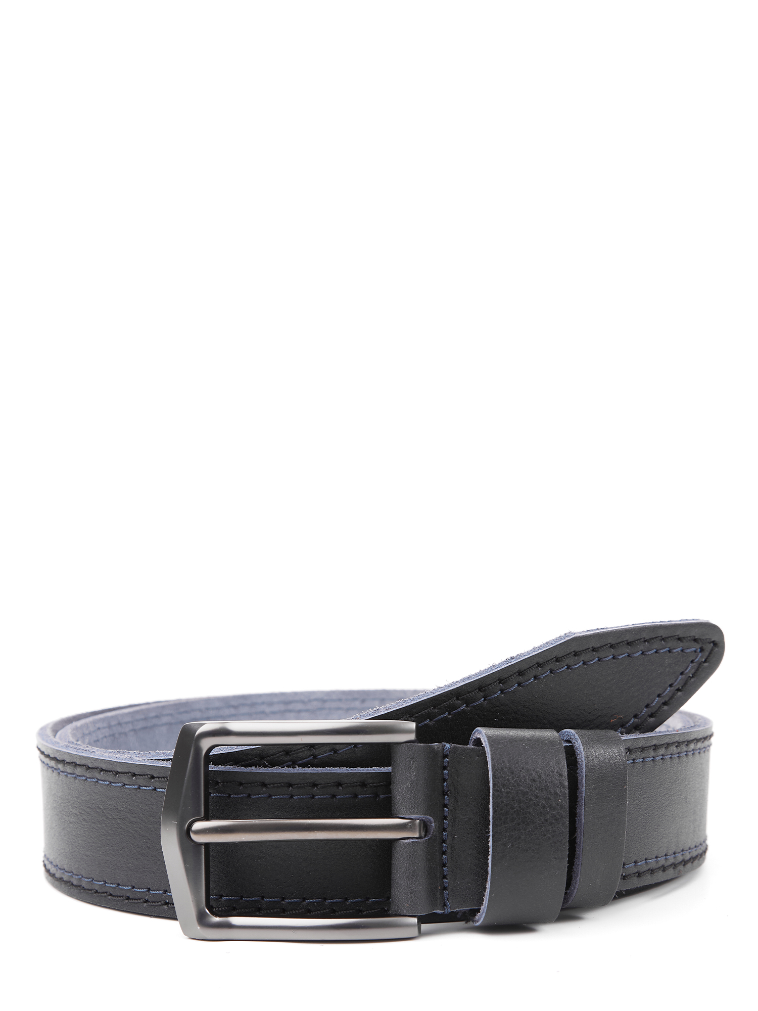 Широкий мужской «джинсовый» ремень от итальянского бренда FABRETTI выполнен из мягкой натуральной кожи в благородном темно-сером цвете с двумя цветными строчками по краям – синими и черными. Лицевая сторона с гладкой мелкозернистой фактурой, тыльная – классический замшевый спил. Ремень дополнен крупной прямоугольной пряжкой в цвете «черненый никель». Две шлевки из гладкой кожи в тон изделию: одна широкая закреплена, вторая - подвижная. Пряжка съемная, на винте, для самостоятельной корректировки длины ремня.