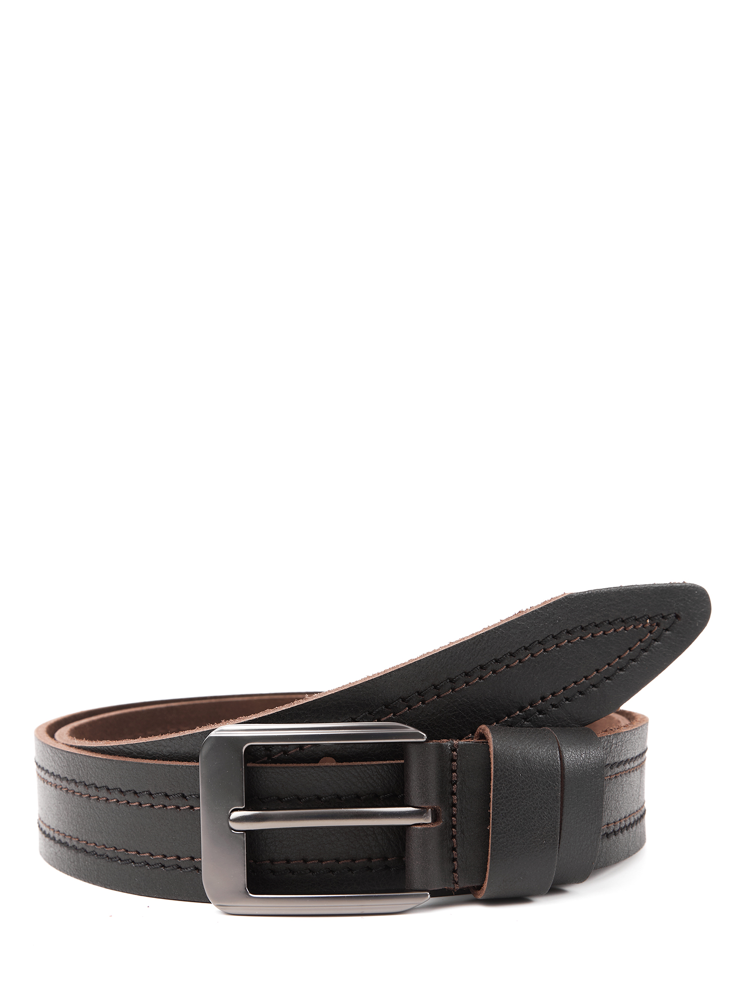 Широкий мужской ремень для джинсов от итальянского бренда FABRETTI выполнен из мягкой натуральной кожи в холодном темно-коричневом цвете с двумя парами цветных строчек по центру – коричневыми и черными. Лицевая сторона с зернистой фактурой, тыльная – классический замшевый спил. Ремень дополнен крупной прямоугольной пряжкой в цвете «черненый никель». Две шлевки из гладкой кожи в тон изделию: одна широкая закреплена, вторая - подвижная. Пряжка съемная, на винте, для самостоятельной корректировки длины ремня.