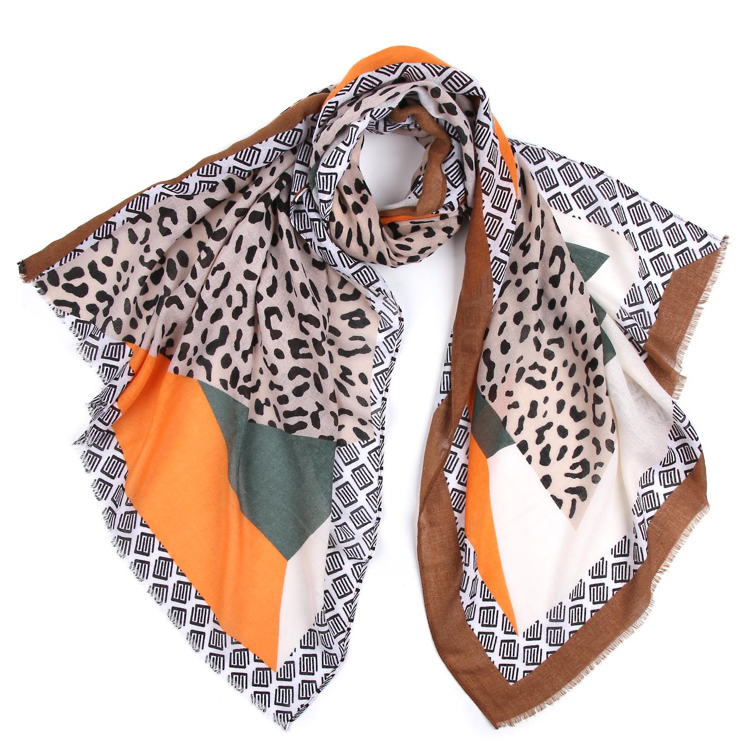В дизайне шарфа FABRETTI совместили анималистический узор и графический орнамент, которые гармонично дополняют яркие цветовые вставки. Для изготовления аксессуара использовали современный материал, придающий изделию мягкость, лёгкость, устойчивость к сохранению цвета и формы. Края изделия украшены аккуратной бахромой.