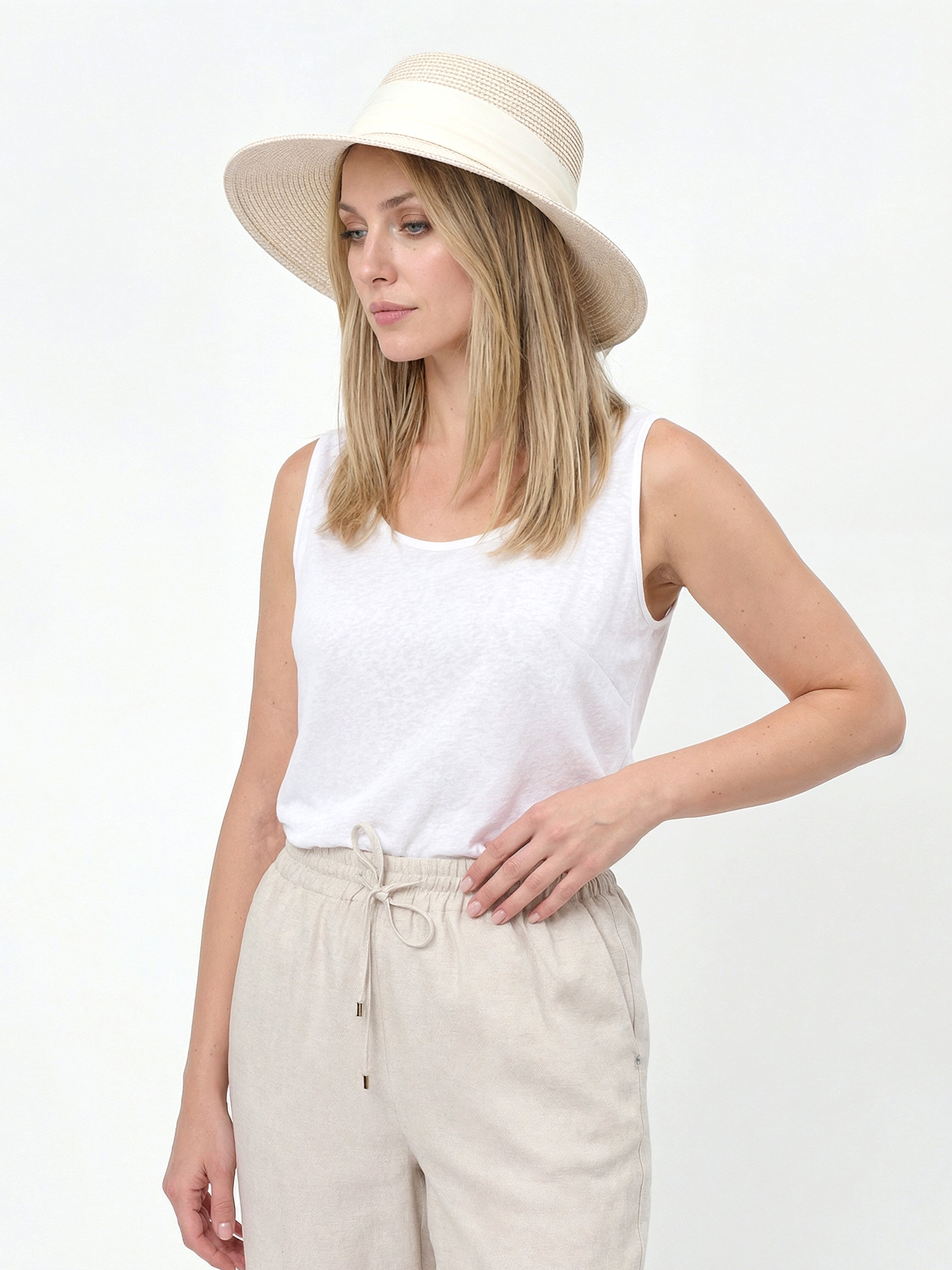 Однотонный топ – универсальный базовый аксессуар, которым можно дополнить юбки различной длины, джинсы, брюки и шорты, а также пиджаки, блейзеры и блузы. Она хорошо сочетается с одеждой с принтами, так как визуально «разгружает» образ, делая его более гармоничным и сбалансированным.