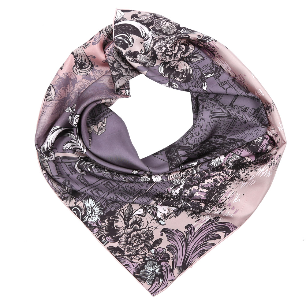 Эксклюзивный женский платок от итальянского бренда Fabretti выполнен из натурального шелка, который придает изделию неповторимый роскошный блеск и гладкость фактуры. Тонкая и прочная нить, создающая струящуюся ткать, подчеркнет изысканный вкус своей обладательницы. Дизайнерское сочетание сиреневых и розовых оттенков превратили модель в стильное изделие, которое станет броским аксессуаром как в современном, так и в классическом образе. Уникальный принт, сочетающий в себе изображение городской архитектуры и орнамента в стиле барокко, позволил дизайнерам создать настоящий шедевр, который станет изюминкой Вашего наряда.