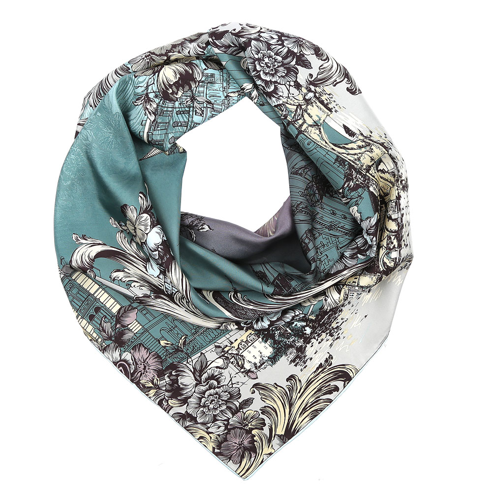 Эксклюзивный женский платок от итальянского бренда Fabretti выполнен из натурального шелка, который придает изделию неповторимый роскошный блеск и гладкость фактуры. Тонкая и прочная нить, создающая струящуюся ткать, подчеркнет изысканный вкус своей обладательницы. Дизайнерское сочетание изумрудных и серых оттенков превратили модель в стильное изделие, которое станет броским аксессуаром как в современном, так и в классическом образе. Уникальный принт, сочетающий в себе изображение городской архитектуры и орнамента в стиле барокко, позволил дизайнерам создать настоящий шедевр, который станет изюминкой Вашего наряда.