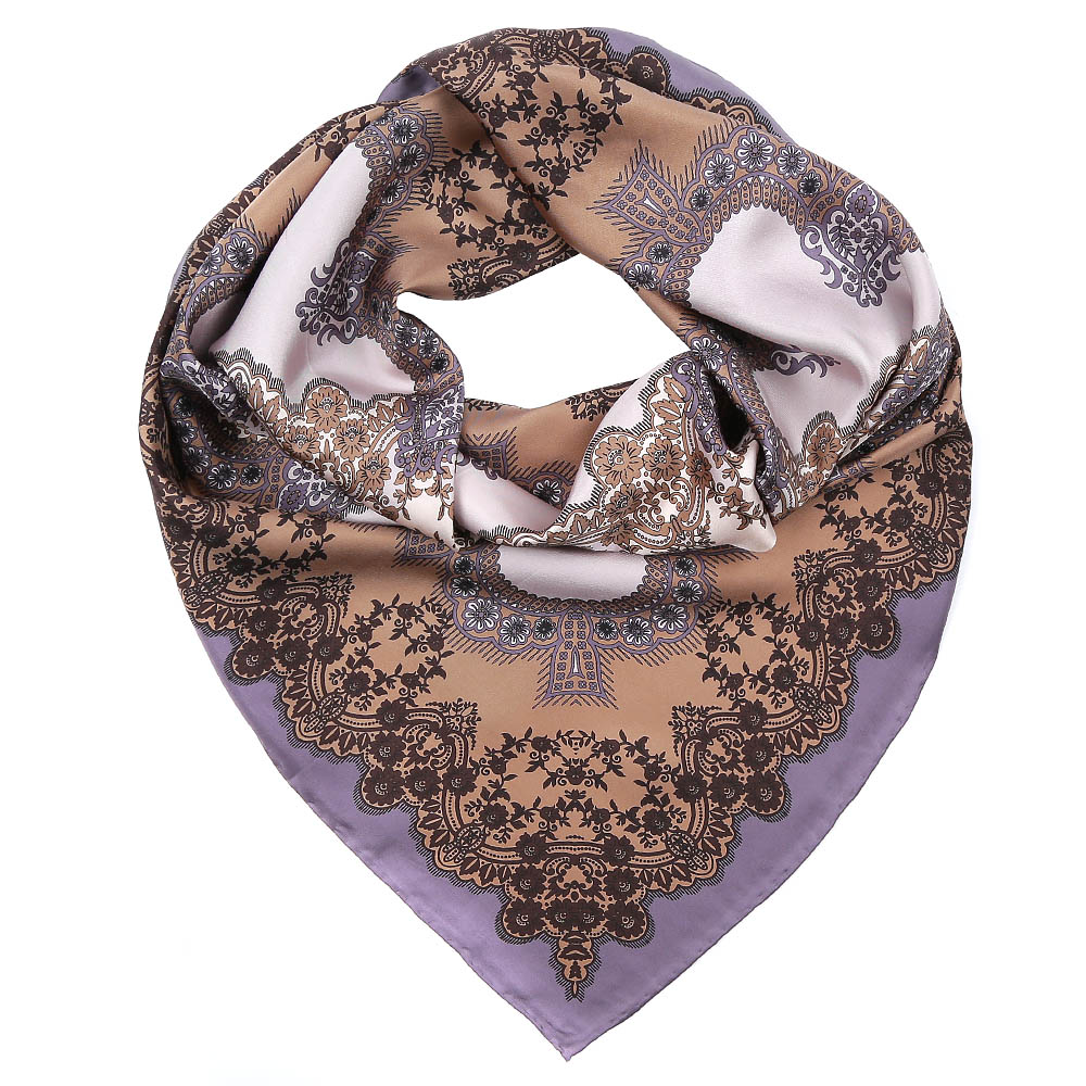 Изысканный женский платок от итальянского бренда Fabretti выполнен из натурального шелка, который придает изделию неповторимый роскошный блеск и гладкость фактуры. Тонкая и прочная нить, создающая струящуюся ткать, подчеркнет изысканный вкус своей обладательницы. Уникальное сочетание сиреневых и песочных оттенков превратили модель в стильное изделие, которое станет броским аксессуаром как в современном, так и в классическом образе. Эксклюзивный принт с аккуратным орнаментом в стиле барокко позволил дизайнерам создать настоящий шедевр, который станет изюминкой Вашего наряда.