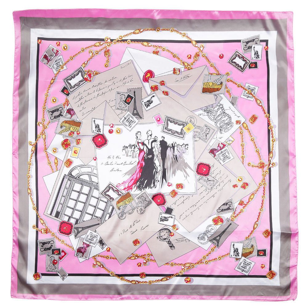 Изысканный женский платок от итальянского бренда Fabretti выполнен из полиэстера, который обладает охлаждающим эффектом и устойчивостью к прямым солнечным лучам, что делает его незаменимым при солнечной погоде. Утонченное сочетание розового и серого оттенка, а также дизайнерский принт в стиле поп-арт с изображением открыток прошлого столетия превратили аксессуар в элегантную модель, которая станет украшением как делового, так и классического образа.