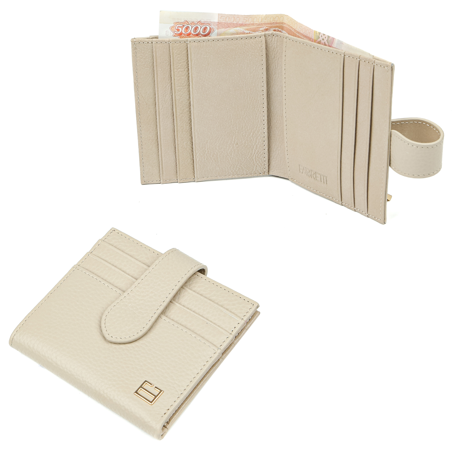 Компактный кошелек-картхолдер FABRETTI выполнен из натуральной зернистой кожи в бежевом оттенке.