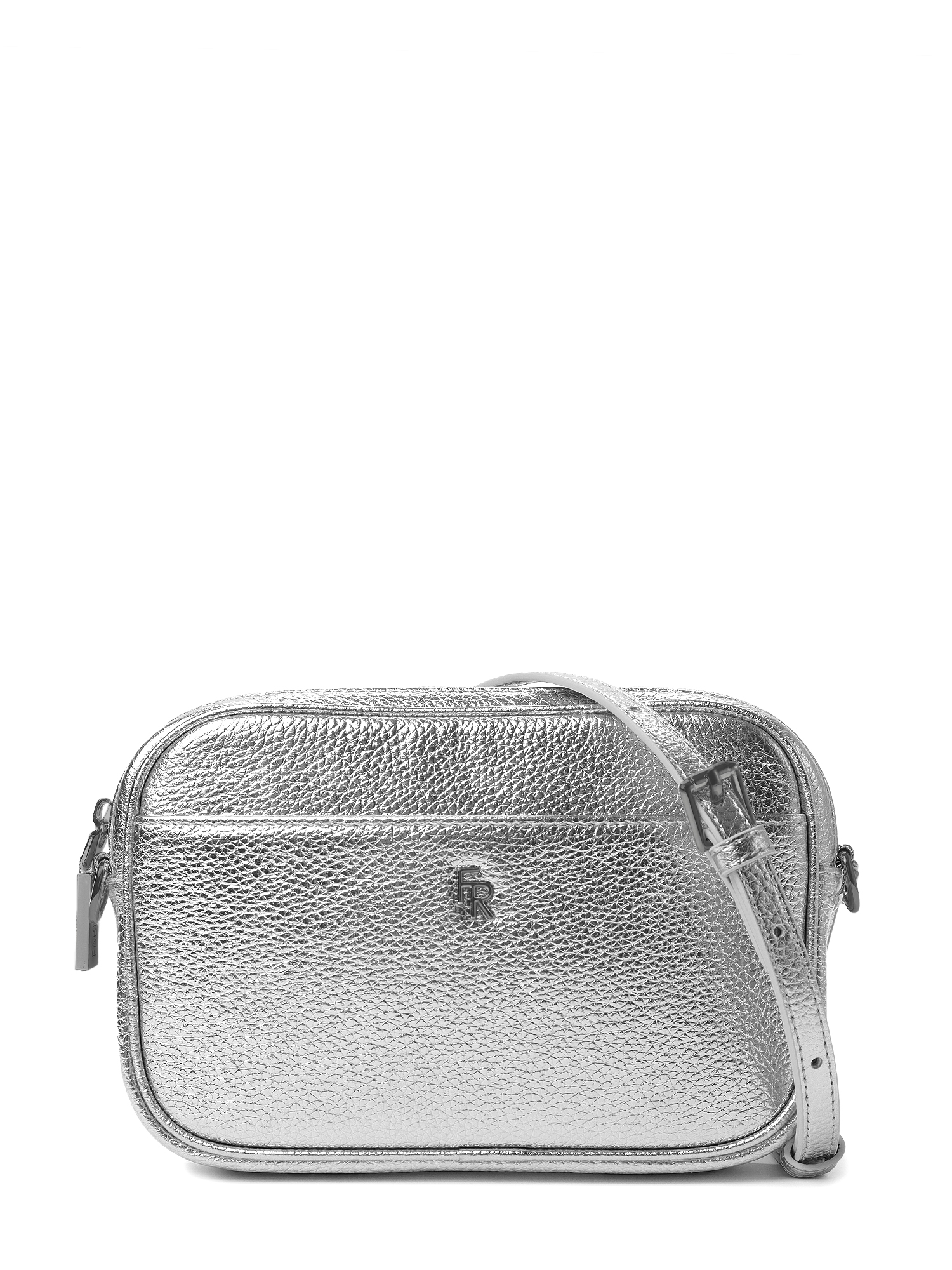 Небольшая прямоугольная сумка через плечо итальянского бренда FABRETTI выполнена из натуральной крупнозернистой кожи в серебристом цвете.