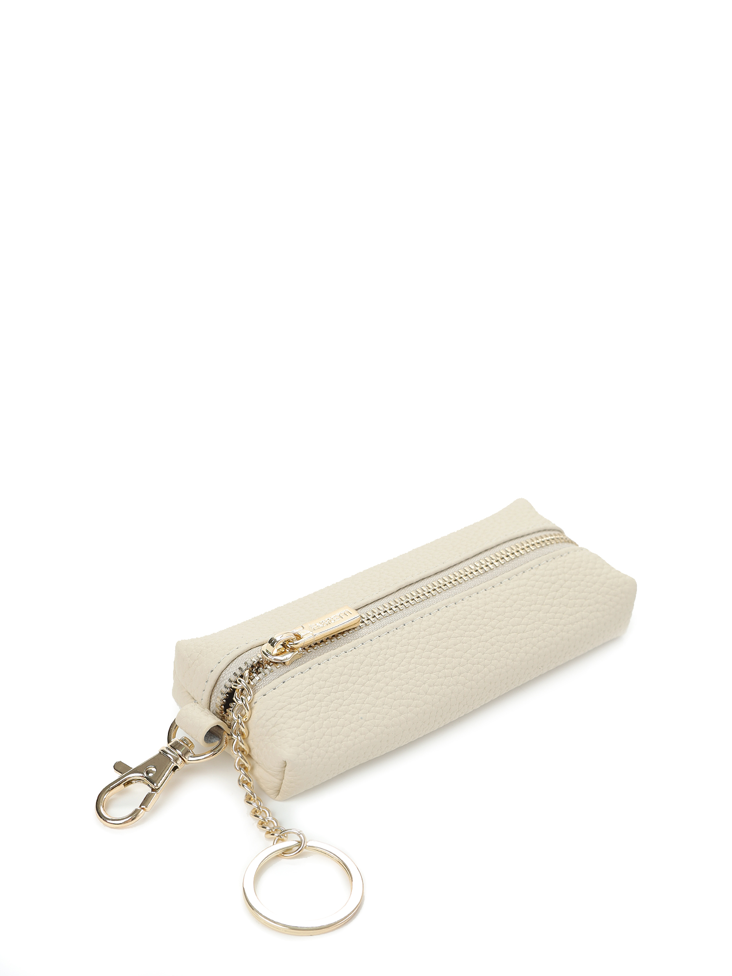 Внутри одно отделение для ключей и удобный металлический держатель на цепочке. На внешней стороне предусмотрен карабин. Аксессуар закрывается на металлическую молнию. Цвет фурнитуры – золото.
