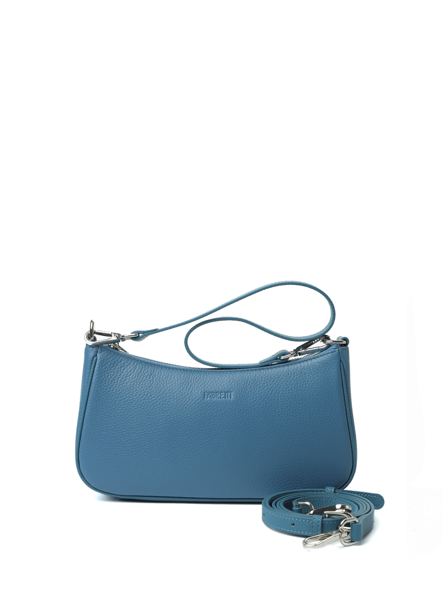 Небольшая женская сумка кросс-боди итальянского бренда FABRETTI из натуральной кожи с зернистой фактурой в трендовом приглушенно-голубом оттенке «александрит».