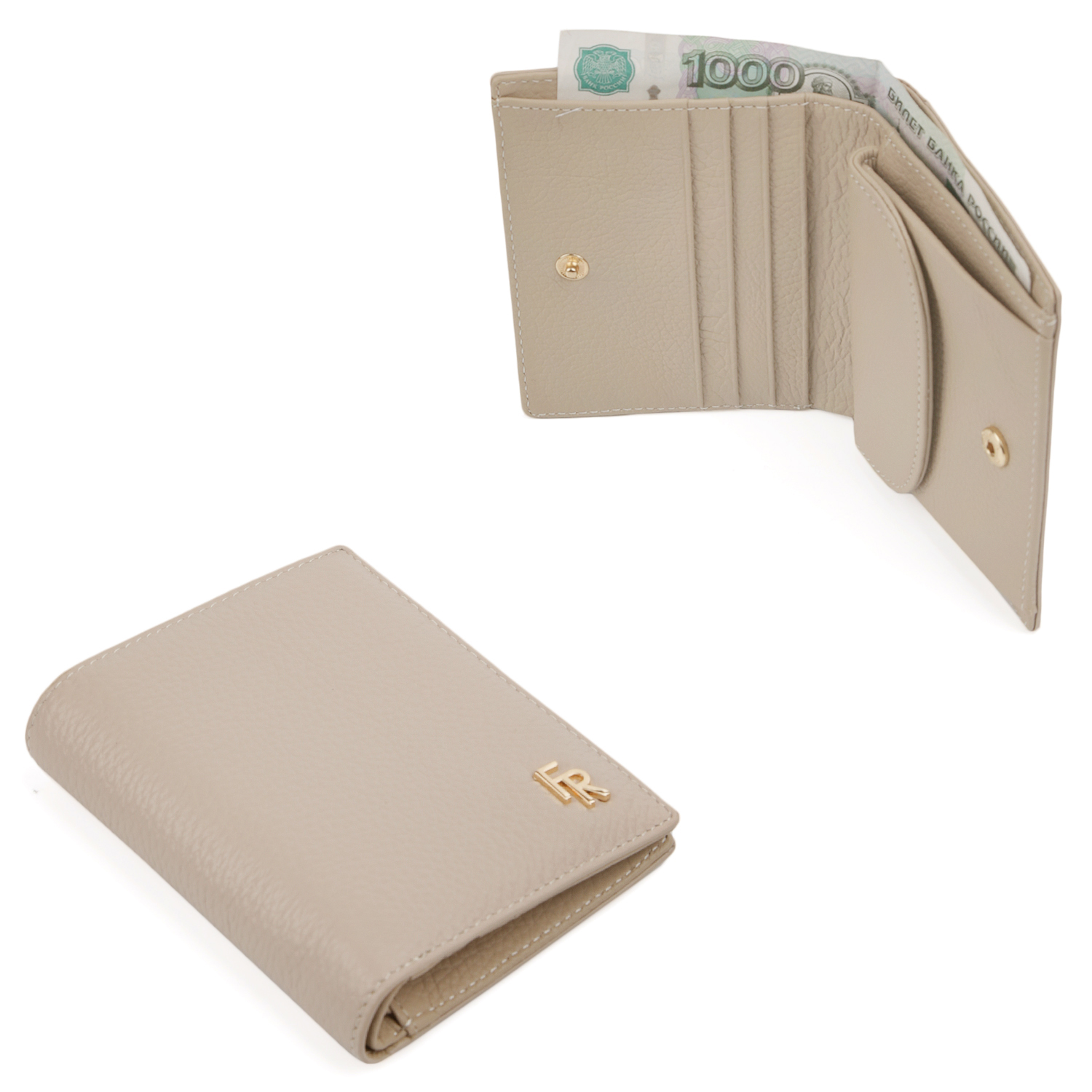 Компактный женский кошелек FABRETTI в бежевом оттенке выполнен из натуральной зернистой кожи.