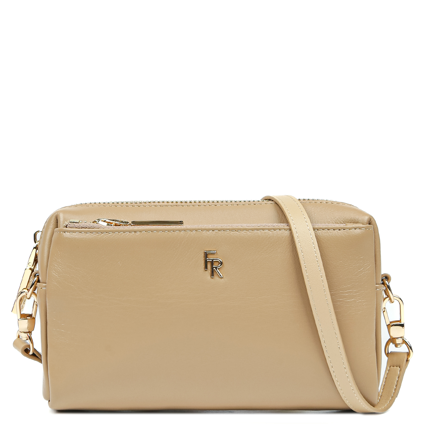 Компактная сумка через плечо FABRETTI выполнена из натуральной гладкой кожи в бежевом оттенке.