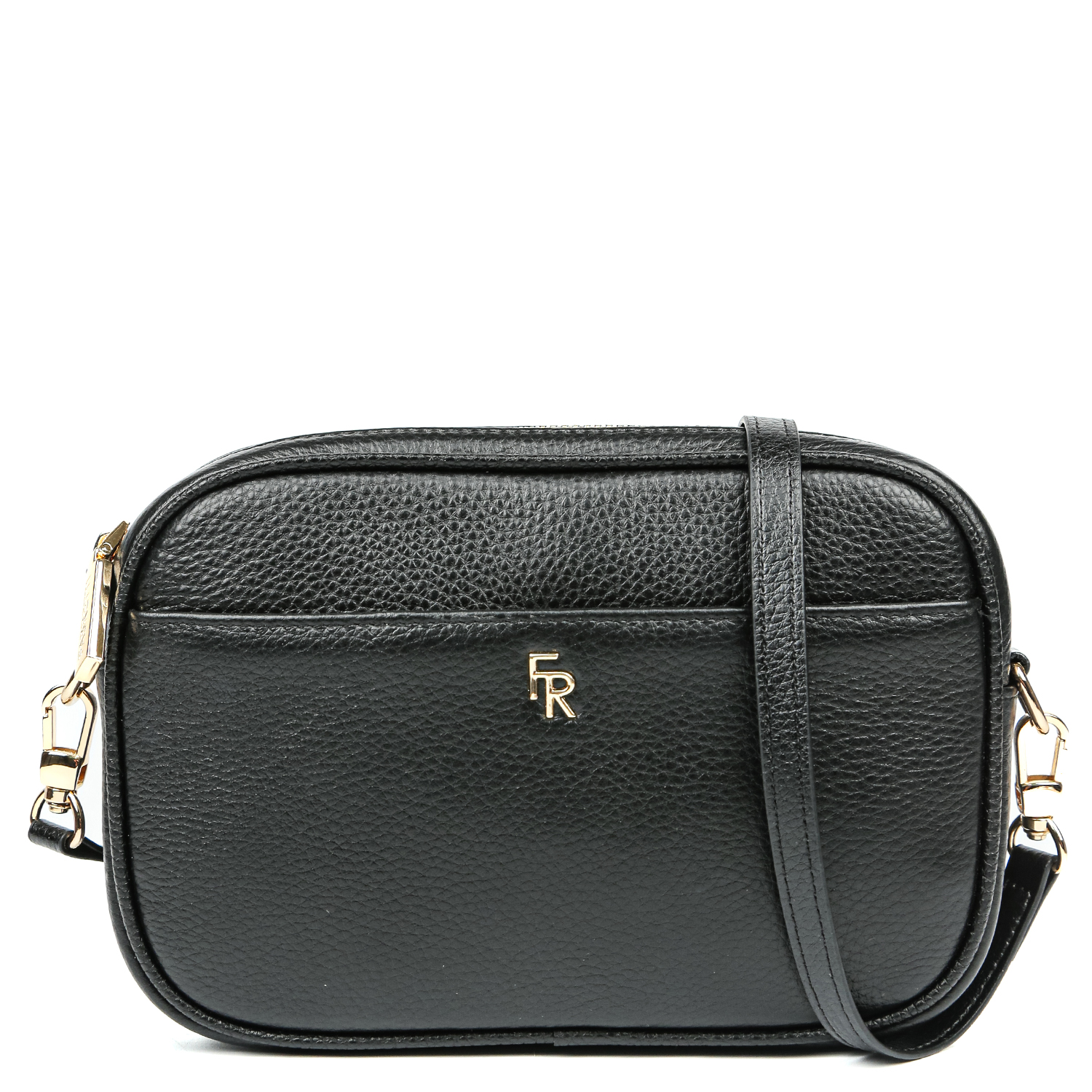 Компактная сумка через плечо FABRETTI выполнена из натуральной зернистой кожи в черном цвете.