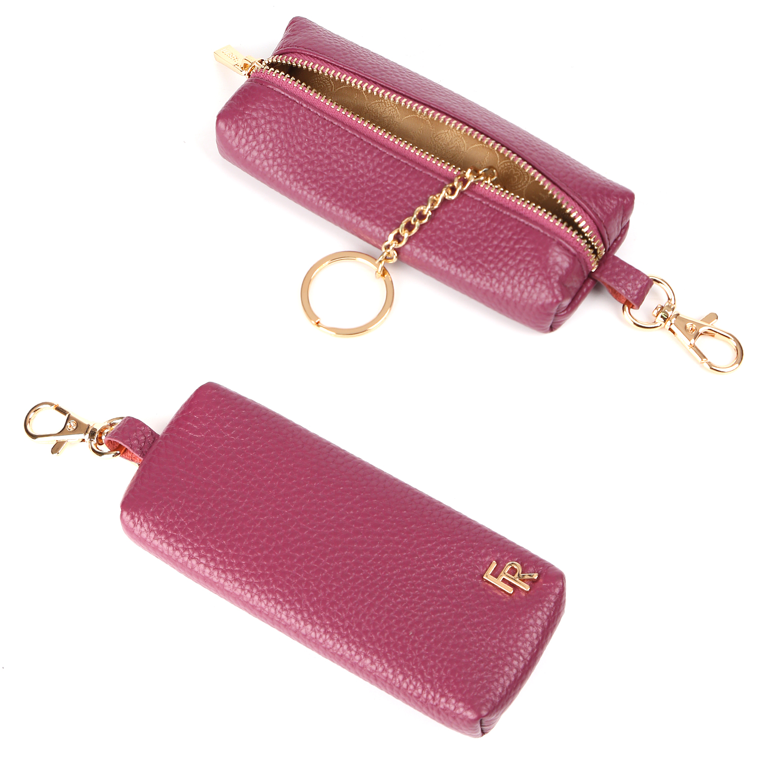 Удобная компактная ключница FABRETTI выполнена из натуральной зернистой кожи. Лаконичный дизайн, фиолетовый оттенок и фурнитура под золото превращают модель в модный аксессуар, который защитит вещи от сколов и подчеркнет статус.