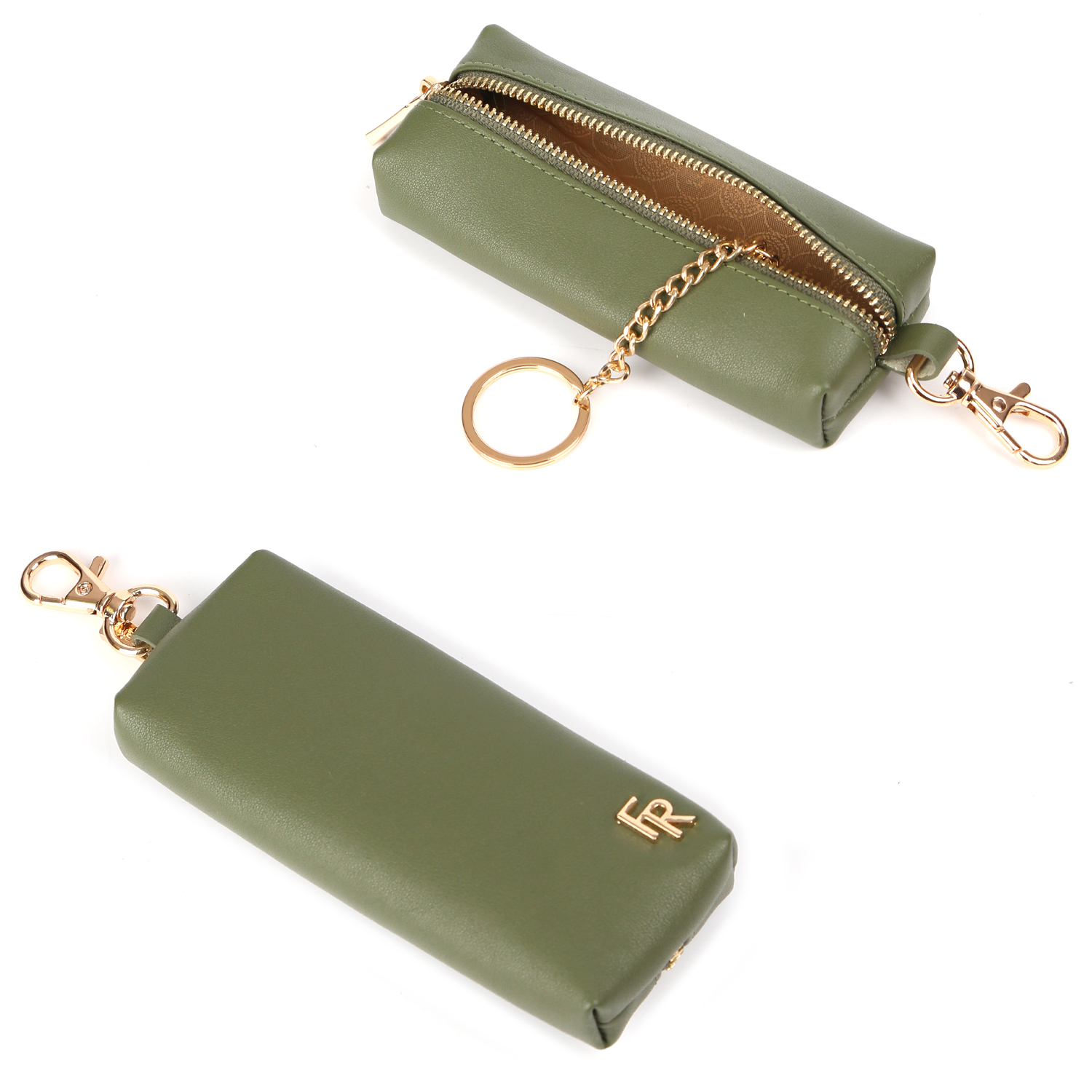 Удобная компактная ключница FABRETTI выполнена из натуральной гладкой кожи. Лаконичный дизайн, оливковый оттенок и фурнитура под золото превращают модель в модный аксессуар, который защитит вещи от сколов и подчеркнет статус.