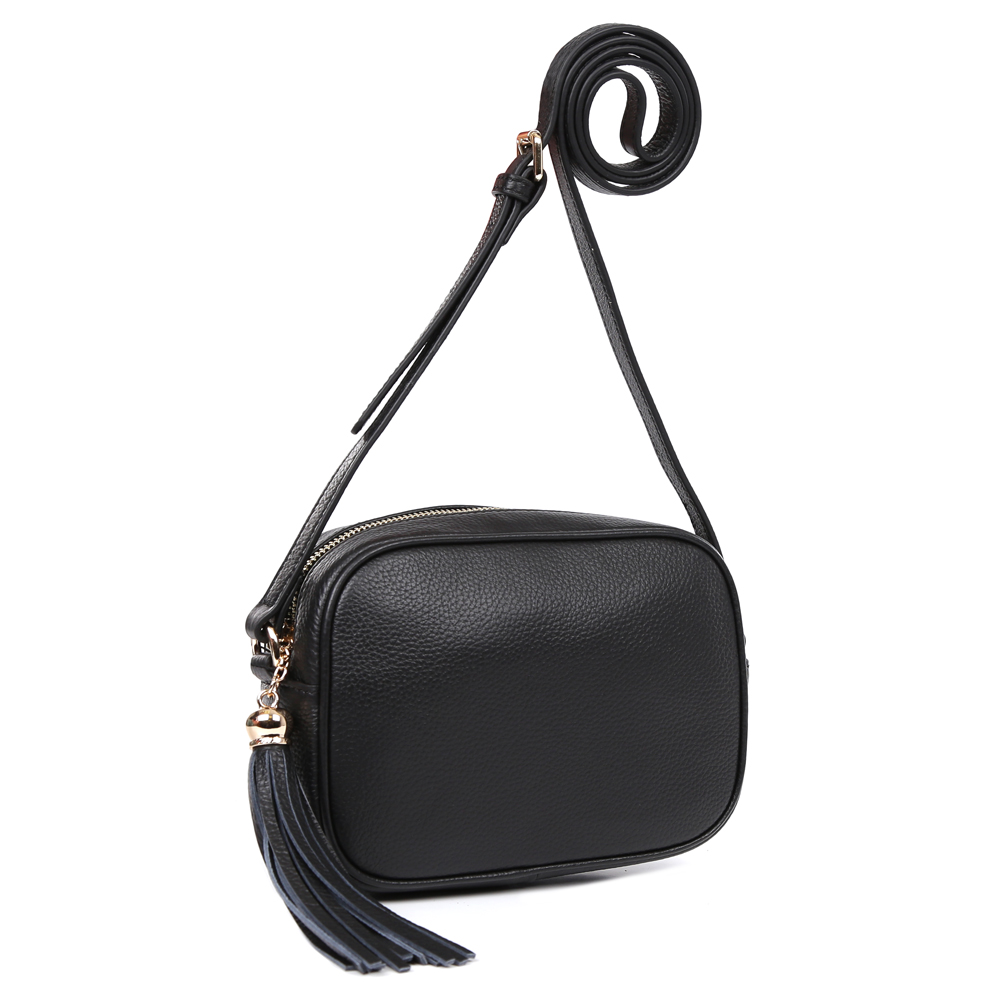 Модель кросс-боди с прямой формой остается самой популярной моделью на протяжении нескольких модных сезонов. Женская сумка от итальянского бренда Fabretti выполненная из натуральной плотной кожи, будет прекрасно смотреться с любым гардеробом. В этой модели сочетаются минималистичный дизайн и стильная фурнитура, которые подчеркнут утончённый вкус своей обладательницы. Классический черный цвет, длинный брелок-кисточка будут прекрасно сочетаться, как с джинсами, так и с классическими костюмами. Сумка имеет одно вместительное отделение, которое закрывается на прочную молнию. Внутри сумки вы с легкостью сможете расположить свой сотовый телефон и другие женские мелочи с помощью удобного кармана на молнии. Добавьте в ваш образ изысканные кожаные перчатки из нашей коллекции или шелковый платок и спешите получать восторженные взгляды прохожих!