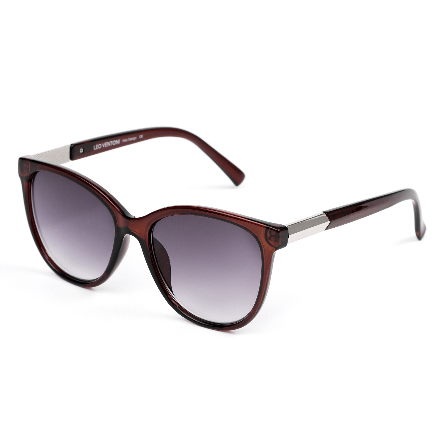 Изящные женские солнцезащитные очки итальянского бренда LEO VENTONI в полупрозрачной коричневой оправе "кошачий глаз". Градиентные серо-сиреневые линзы позволяют видеть одинаково хорошо как в помещении, так и на солнечной улице.