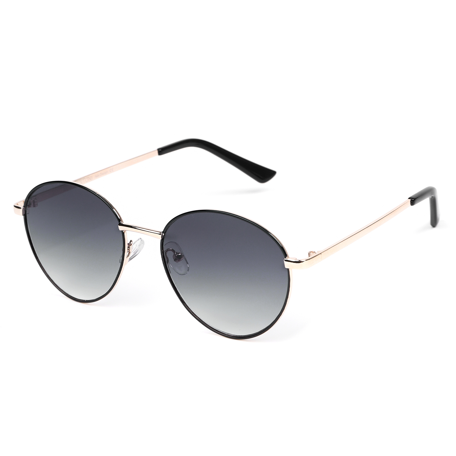 Необычные солнцезащитные очки итальянского бренда LEO VENTONI в округлой металлической оправе черного цвета с золотистым мостом и дужками. Градиентные темно-серые линзы позволяют видеть одинаково хорошо как в помещении, так и на солнечной улице.