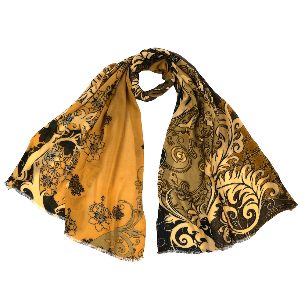 Женский платок от итальянского бренда Fabretti выполнен из натуральной вискозы, которая придает изделию неповторимую мягкость и шелковистость фактуры. Роскошный золотой цвет и болотный оттенок позволил дизайнерам создать настоящий шедевр, который станет изюминкой Вашего наряда. Эксклюзивный рисунок, в котором утонченные линии и изысканные узоры сплетаются в роскошную композицию, сделает ваш образ обворожительным и неповторимым!