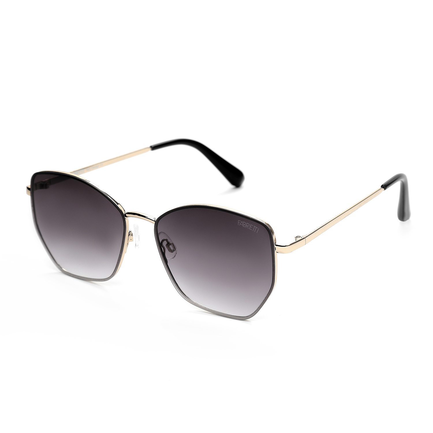 Женские солнцезащитные очки итальянского бренда FABRETTI необычной геометрической формы в тонкой металлической оправе серебристого оттенка. Градиентные серо-фиолетовые линзы позволяют видеть одинаково хорошо как в помещении, так и на солнечной улице.