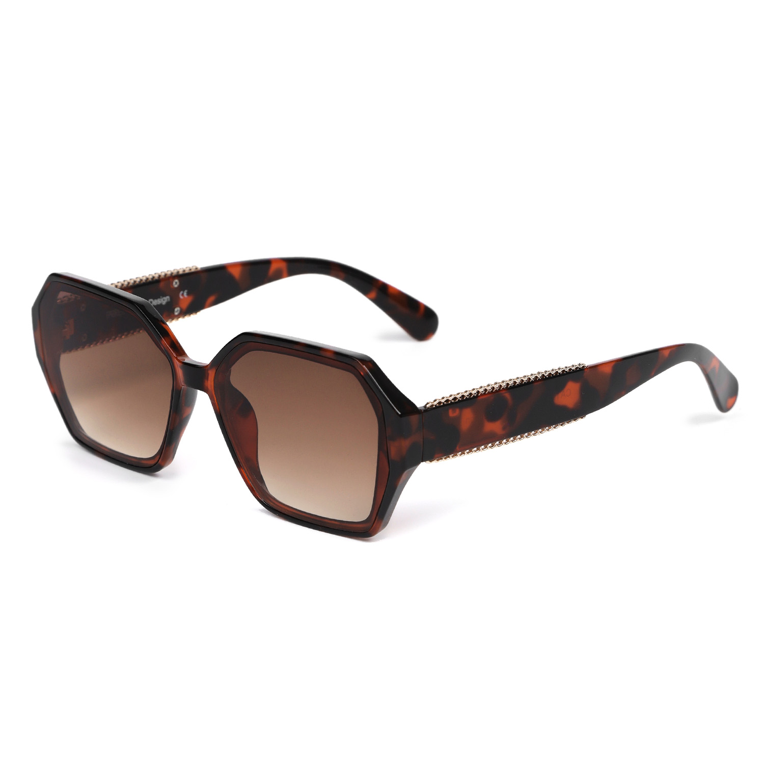 Геометрическая оправа «шестигранник» – интересное стилевое решение, акцентирующее внимание на глазах. Очки делают образ более современным и оригинальным, анималистичный узор на оправе привносит в образ смелые нотки и привлекает внимание. Дужки украшены золотистым орнаментом по краям.