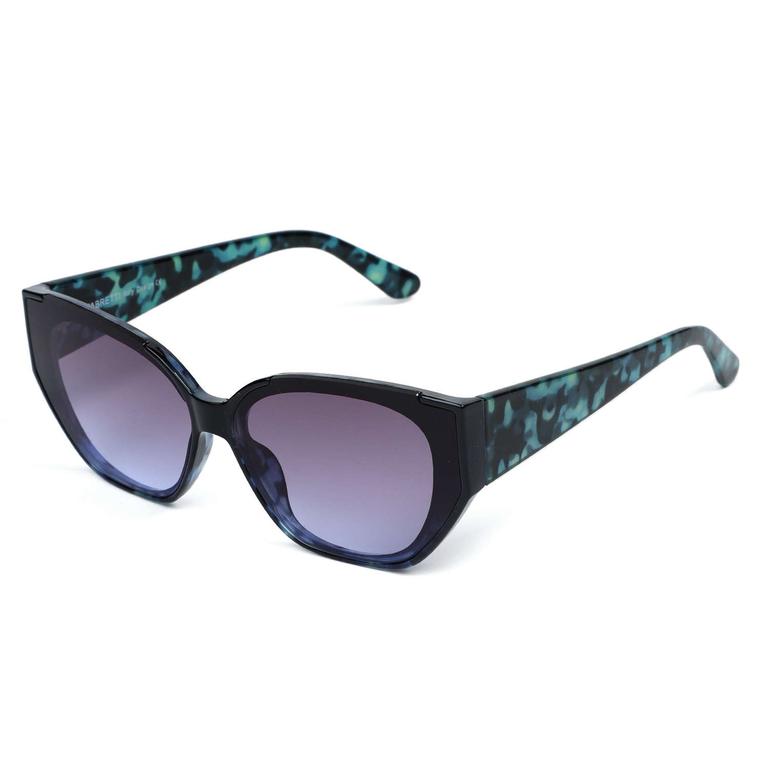 Оригинальные солнцезащитные очки итальянского бренда FABRETTI в полупрозрачной голубой оправе с разводами, выполненной в форме "кошачий глаз". Градиентные сиренево-голубые линзы позволяют видеть одинаково хорошо как в помещении, так и на солнечной улице.