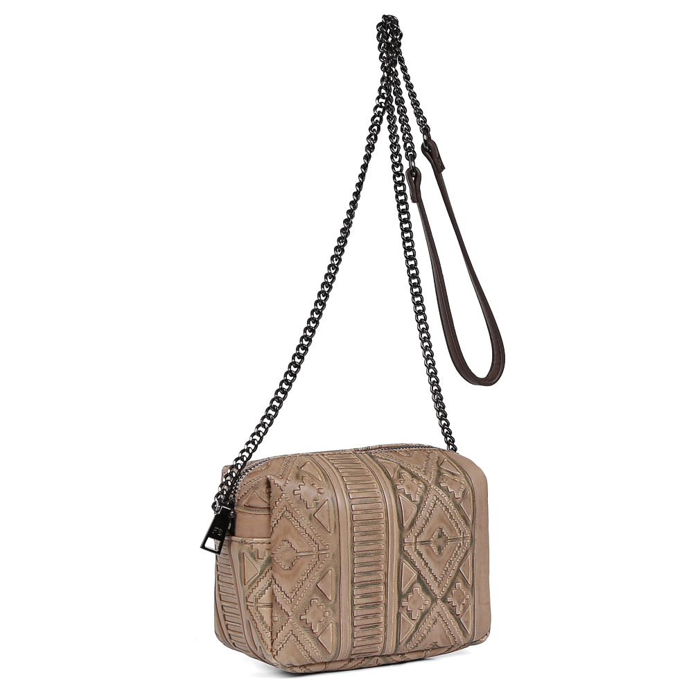 Стильная женская сумка кросс-боди Fabretti выполнена из высококачественной экокожи, которая держит форму и имеет мягкую и приятную на ощупь фактуру. Утонченный оттенок "кофе с молоком", а также дизайнерский объемный принт в геометрическом стиле - все это поможет дополнить и завершить Ваш изысканный и роскошный образ. Кросс-боди имеет одно вместительное отделение, которое закрывается на прочную молнию. Внутри сумки вы с легкостью сможете расположить свой сотовый телефон и другие женские мелочи с помощью удобного кармана на молнии. Модель очень компактна и не вмещает формат A4. Дополните ваш look изысканный шелковым платком или солнцезащитными очками из наших коллекций и спешите получать комплименты от ваших знакомых!