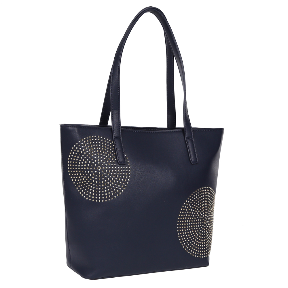Если Вы ищете идеальную модель, подходящую для деловых встреч и повседневных прогулок с друзьями, то женская сумка Fabretti, выполненная из высококачественной экокожи, создана специально для Вас.Насыщенный темно-синий цвет и стильная россыпь люверсов - все это превращает каждодневный аксессуар в эффектную и привлекательную сумку. Вместительная форма изделия позволит носить с собой любимые гаджеты, папки и документы формата А4, а также другие нужные вещи. Сумка имеет одно отделение, которое закрывается на молнию с металлическим поводком. Внутри дизайнеры разместили удобные карманы для женских мелочей и сотового телефона. Дополните ваш образ шелковым платком и перчатками из нашей коллекции и отправляйтесь получать восторженные взгляды прохожих!