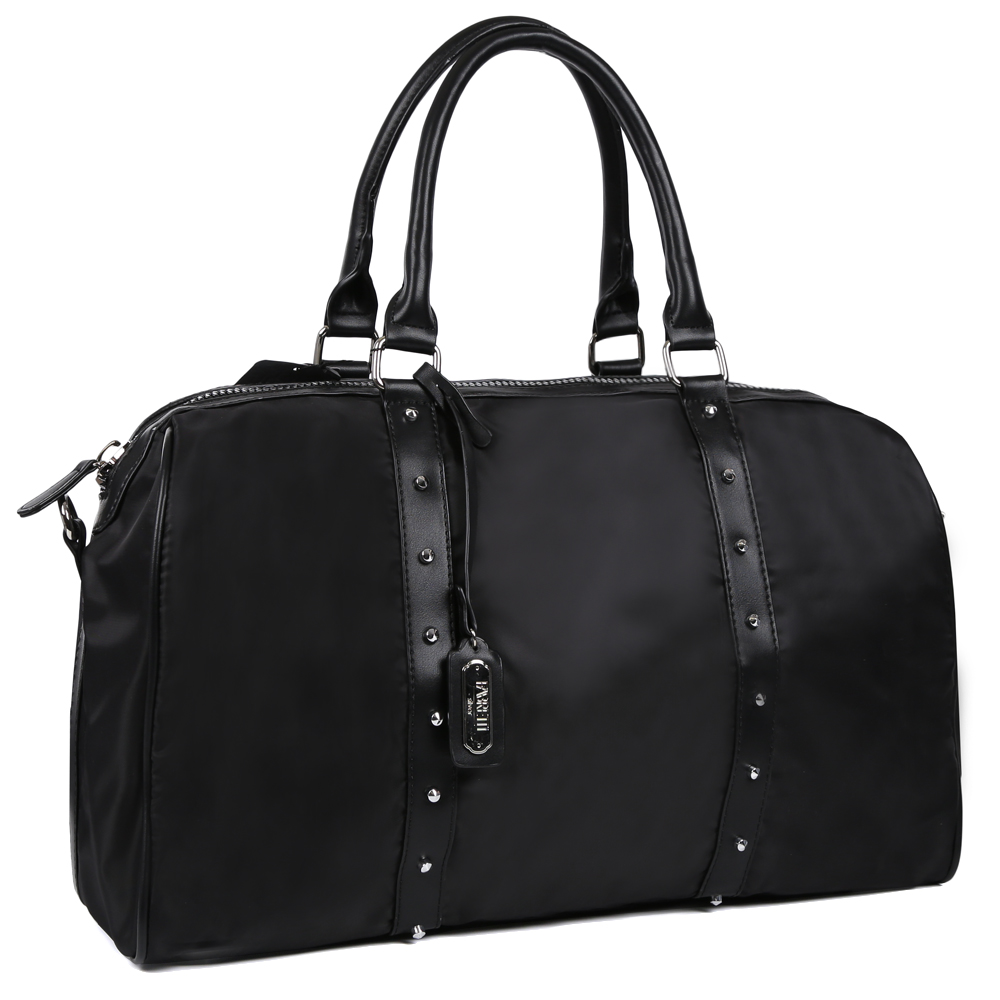 Вместительная дорожная сумка для женщин из новой линии Fabretti Silver выполнена из высококачественной экокожи, которая держит форму и имеет приятную фактуру. Классический черный цвет, фурнитура в серебряном цвете и длинный брелок с логотипом бренда превратили модель в утонченный аксессуар, который станет прекрасным дополнением как для делового, так и для повседневного стиля. Сумка имеет одно вместительное отделение, закрывающиеся на молнию с металлическим поводком. Вы с легкостью сможете носить с собой папки и документы формата А4. Внутри находятся удобные карманы для сотового телефона и прочих мелочей.