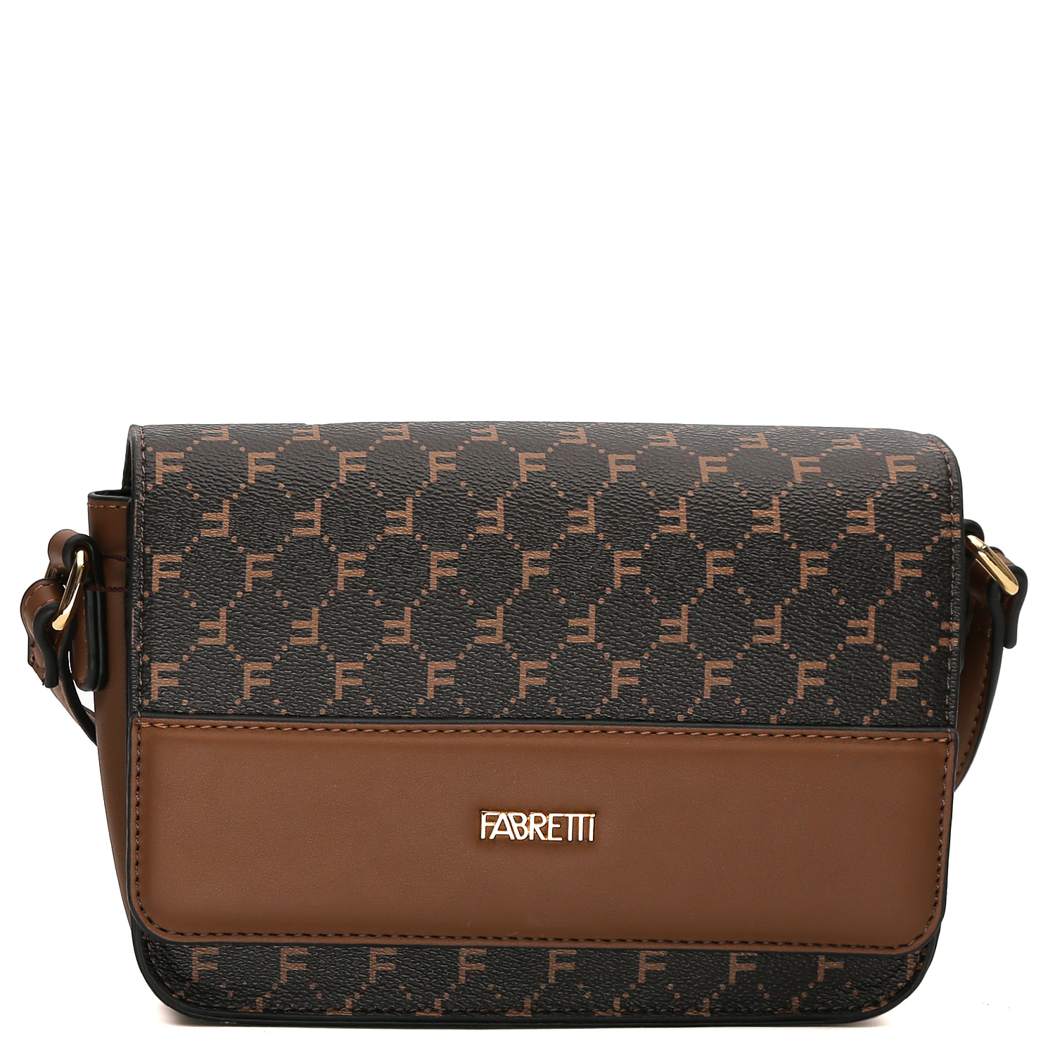 Компактная сумка кросс-боди итальянского бренда Fabretti отличается выразительным дизайном в ультрамодном стиле "логомания". Аксессуар привнесет в образ женщины особый шик и подчеркнет ее элегантность. Сумка закрывается на клапан с магнитной кнопкой. Под клапаном расположен небольшой карман. Плечевой ремень - несъемный, его длина регулируется.